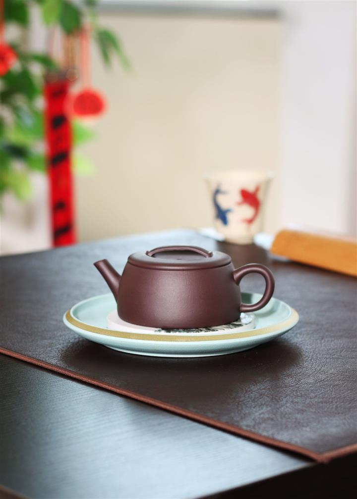 【泥料特點】砂土氣重,似淳實農民,日久使用,漸露鋒芒,養成變化,溫潤莊重。紫砂是壹種雙重氣孔結構的多孔性材質,氣孔微細,密度高。用紫砂壺沏茶,不失原味,且香不渙散,得茶之真香真味。紫砂使用越久,壺身色澤越發光亮照人,氣韻溫雅。紫砂壺長久使用器身會因撫摸擦拭,變得越發溫潤光澤。