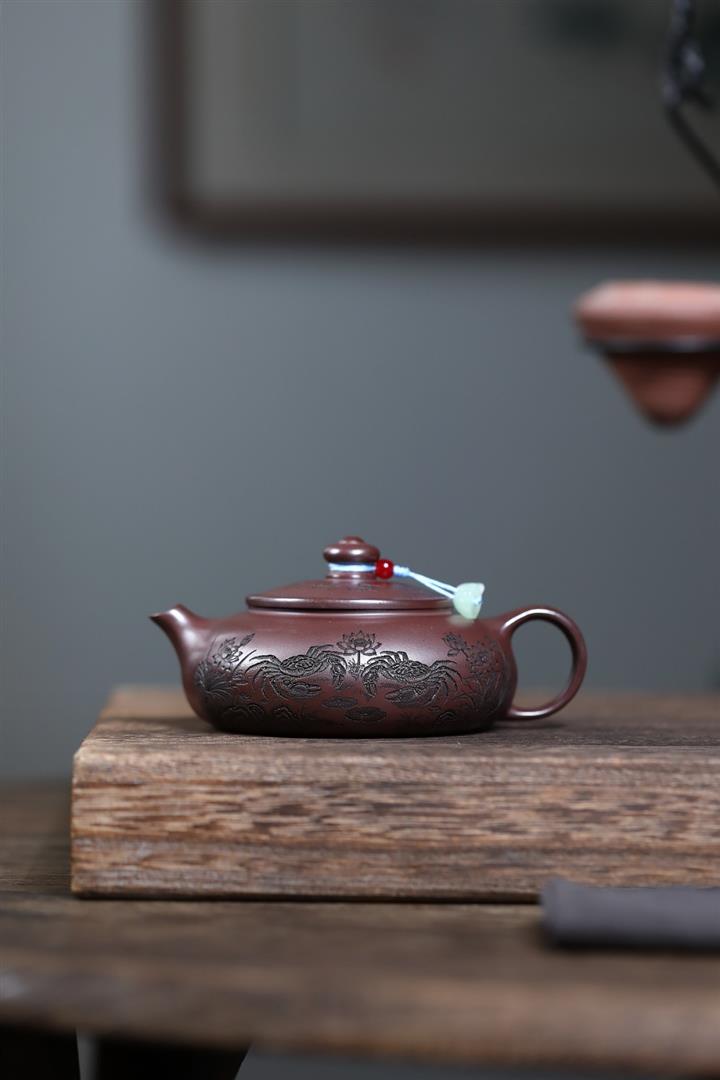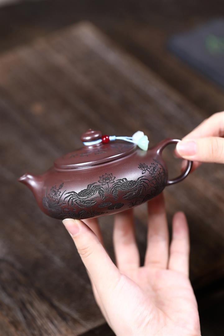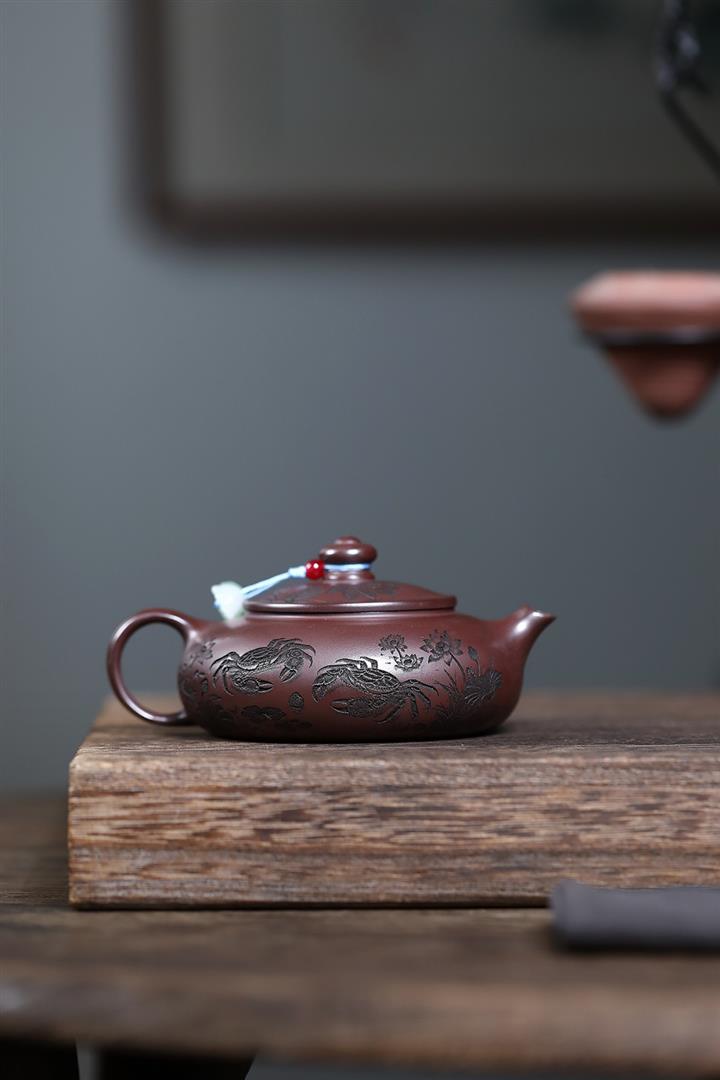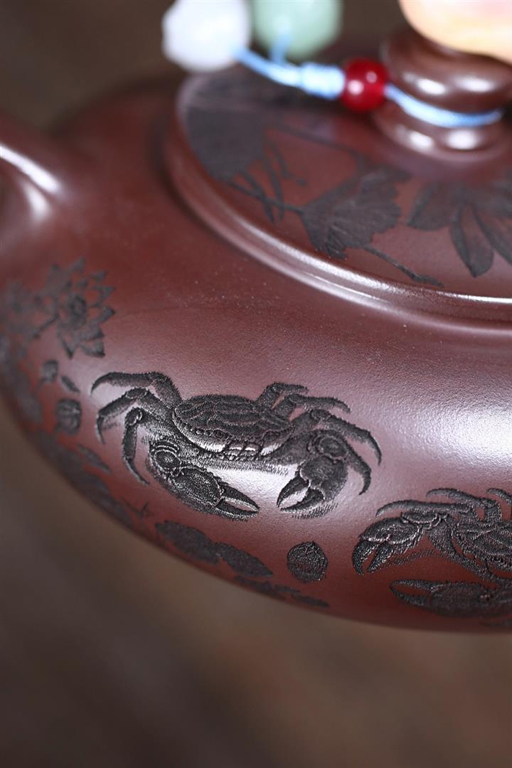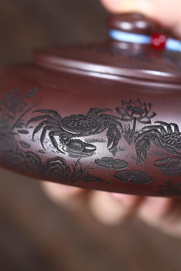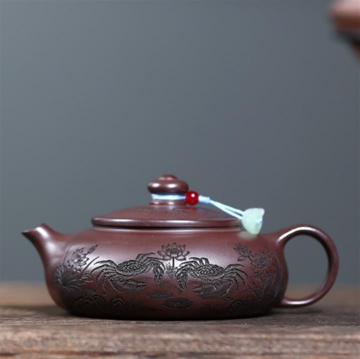 150cc原礦石紅泥荷蟹歸塘寒江茶壺POT8182