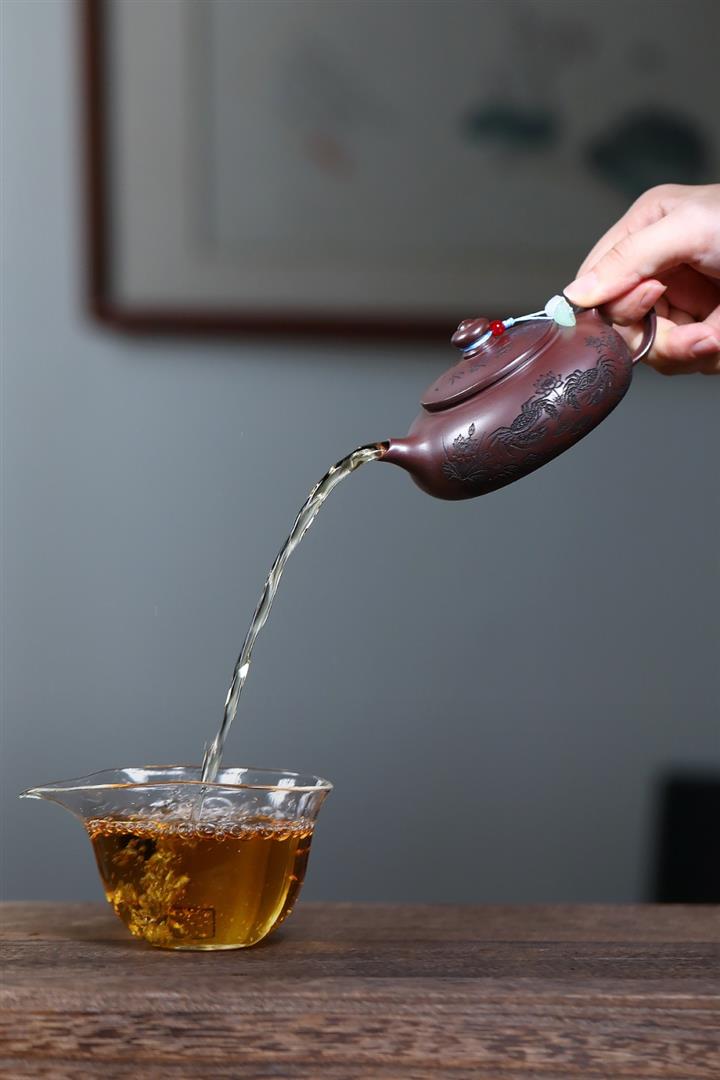 【泥料特點】砂土氣重,似淳實農民,日久使用,漸露鋒芒,養成變化,溫潤莊重。紫砂是壹種雙重氣孔結構的多孔性材質,氣孔微細,密度高。用紫砂壺沏茶,不失原味,且香不渙散,得茶之真香真味。紫砂使用越久,壺身色澤越發光亮照人,氣韻溫雅。紫砂壺長久使用器身會因撫摸擦拭,變得越發溫潤光澤。