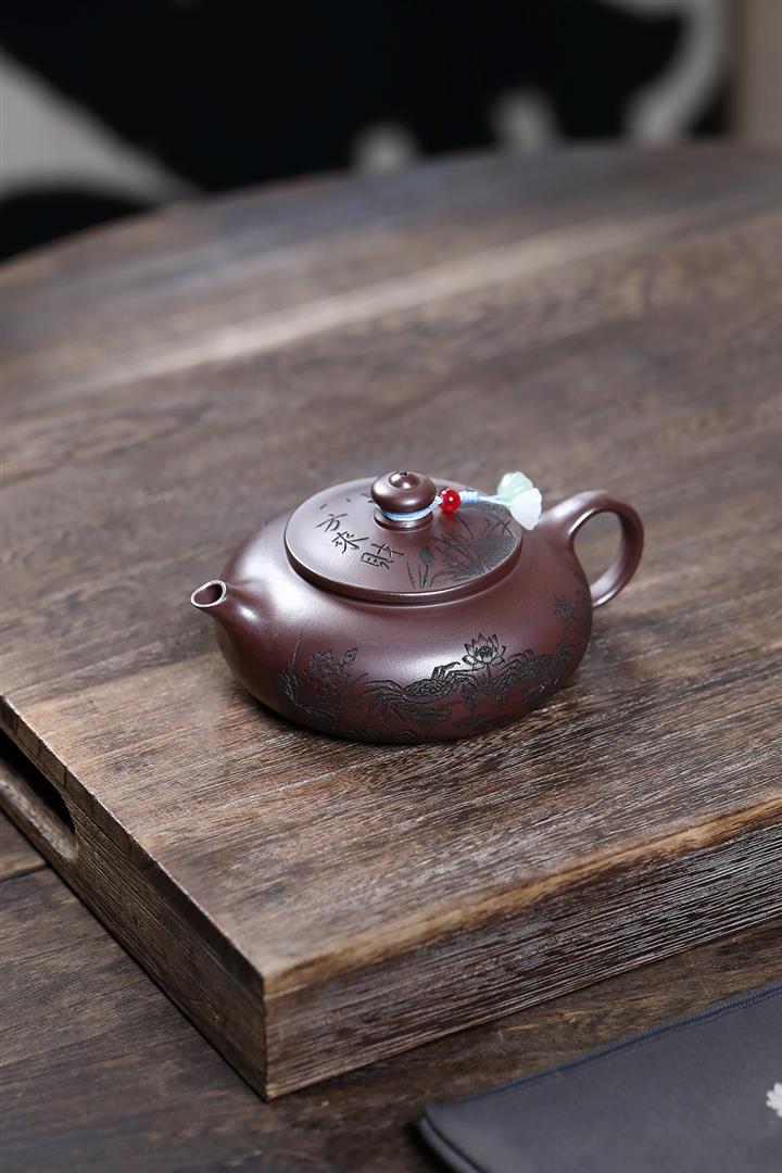 青灰段華穎刻繪紫砂壺 POT3561