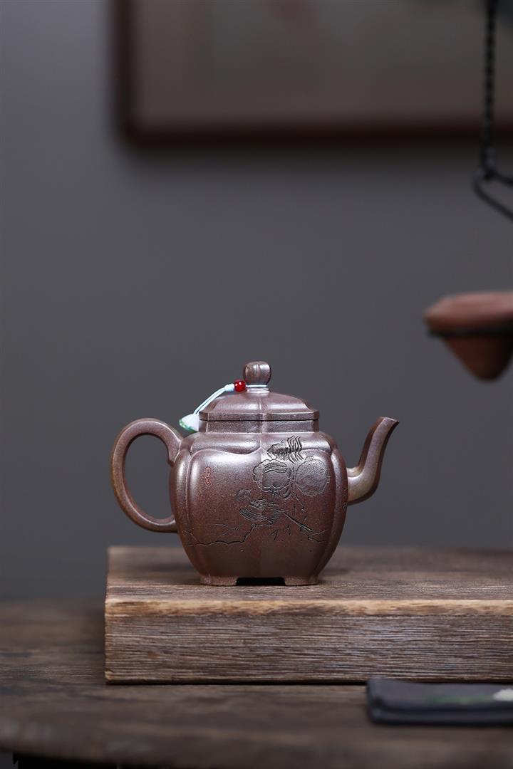 【作品介紹】此款壺形線條流暢,壺把,壺嘴,壺身壹氣呵成栩栩如生,是收藏把玩的好壺,泥料色澤古樸典雅,日久使用,漸露鋒芒,養成變化快,溫潤莊重,用其泡茶,使用的年代久,壺身就溫潤,泡出來的茶湯也就醇郁芳馨。