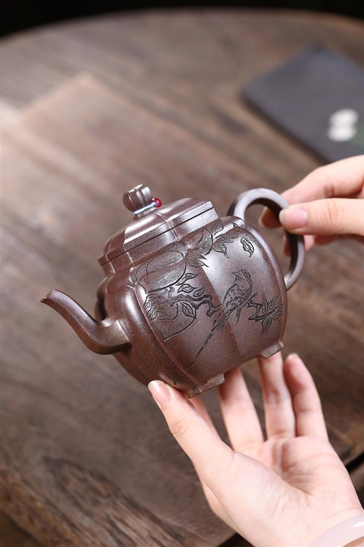 250cc原礦文革紫泥錘紋蓮花圓珠泡茶壺POT9357