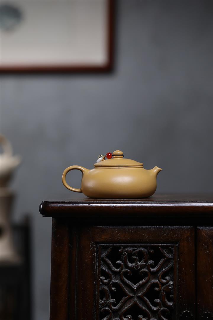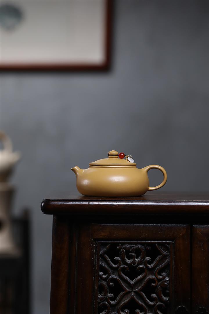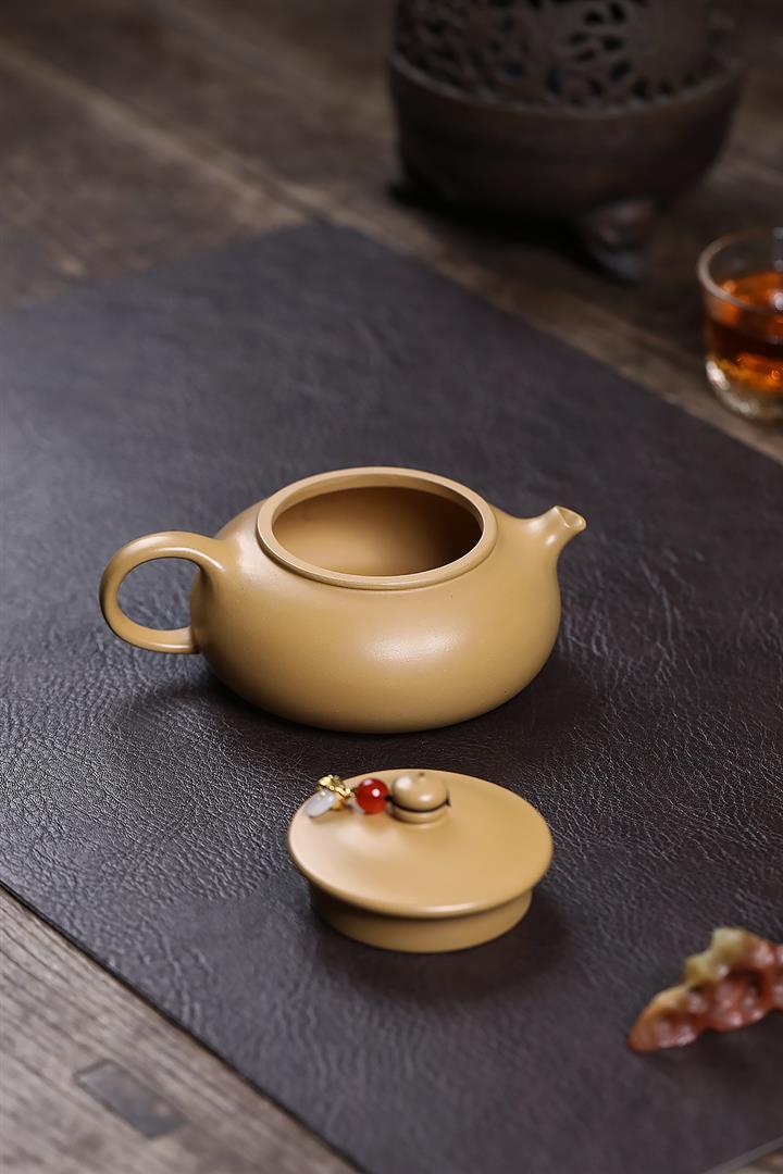 原礦石黃手工刻字秋水茶壺POT6905