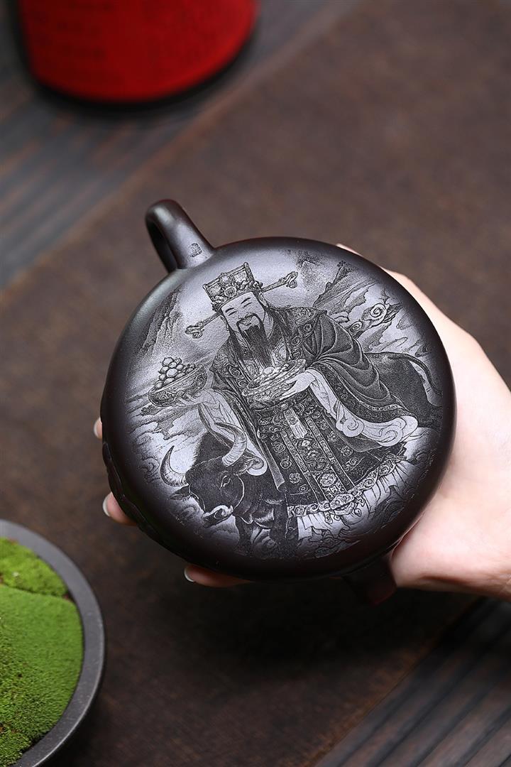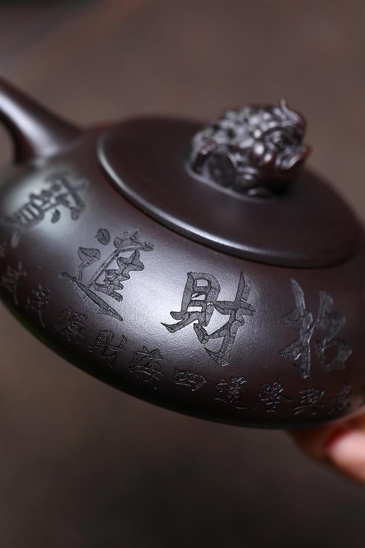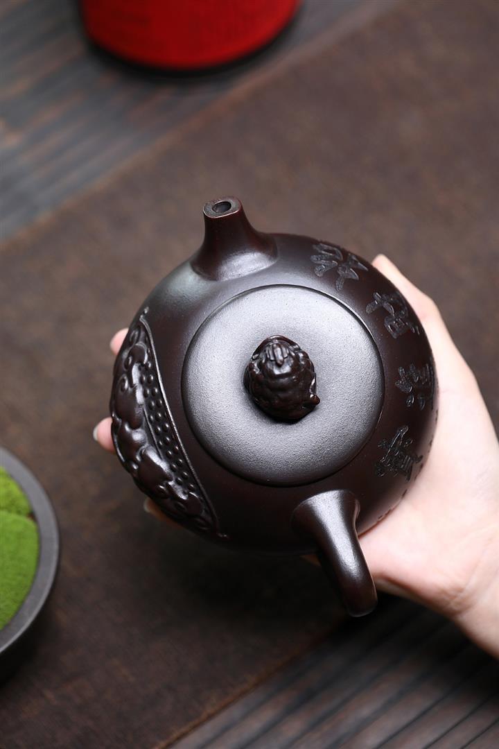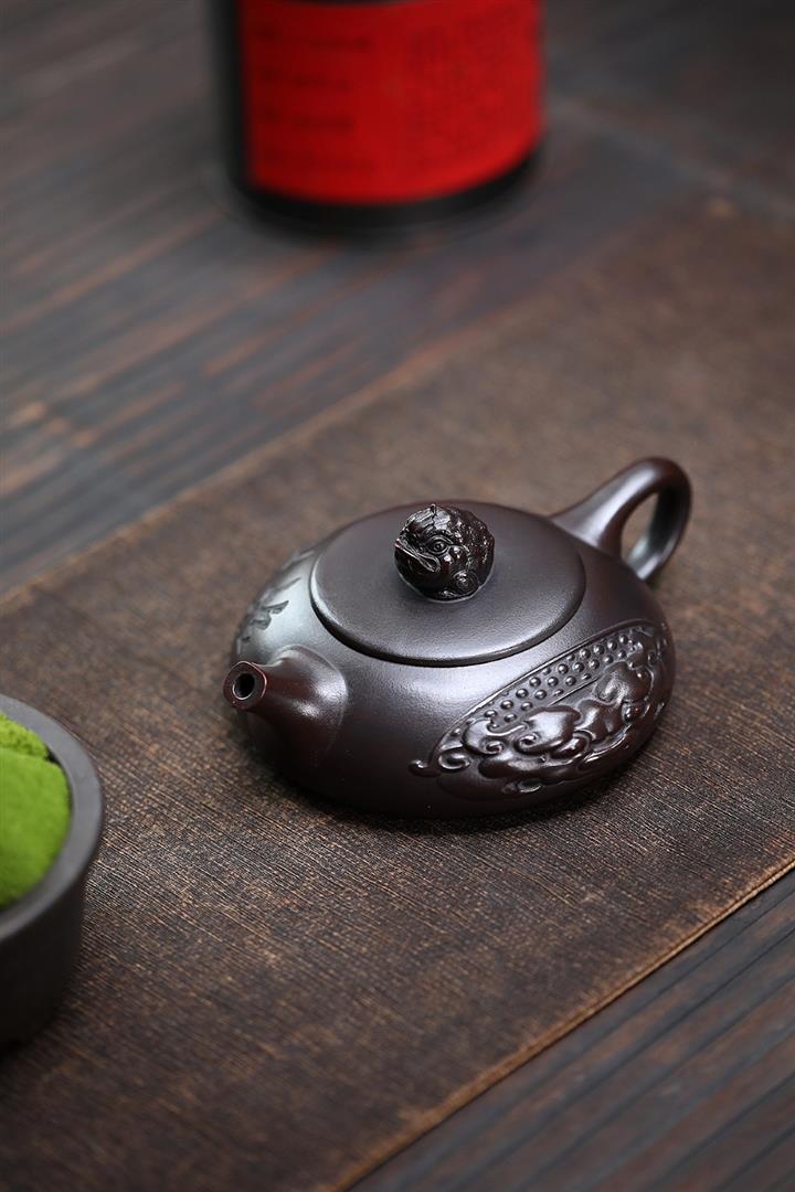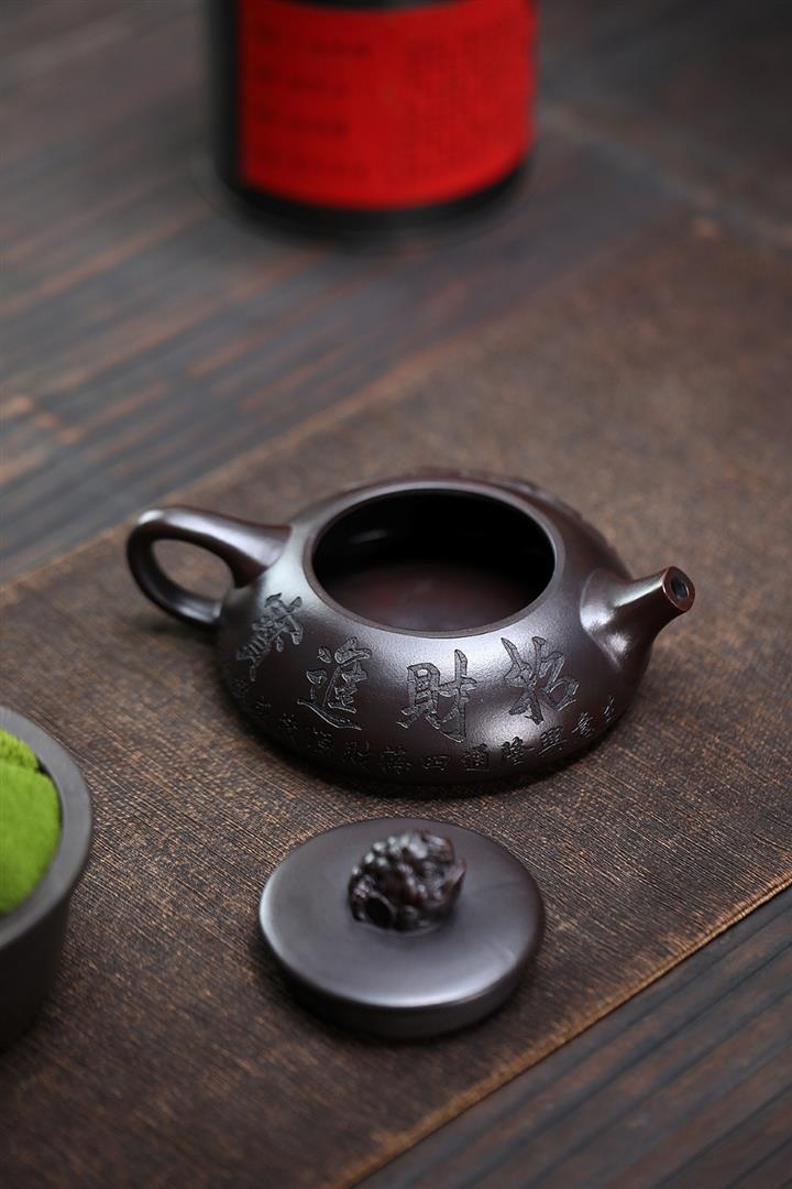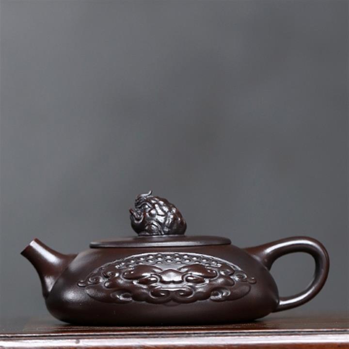 240cc原礦黑泥浮雕金蟾石瓢壺茶壺POT8234