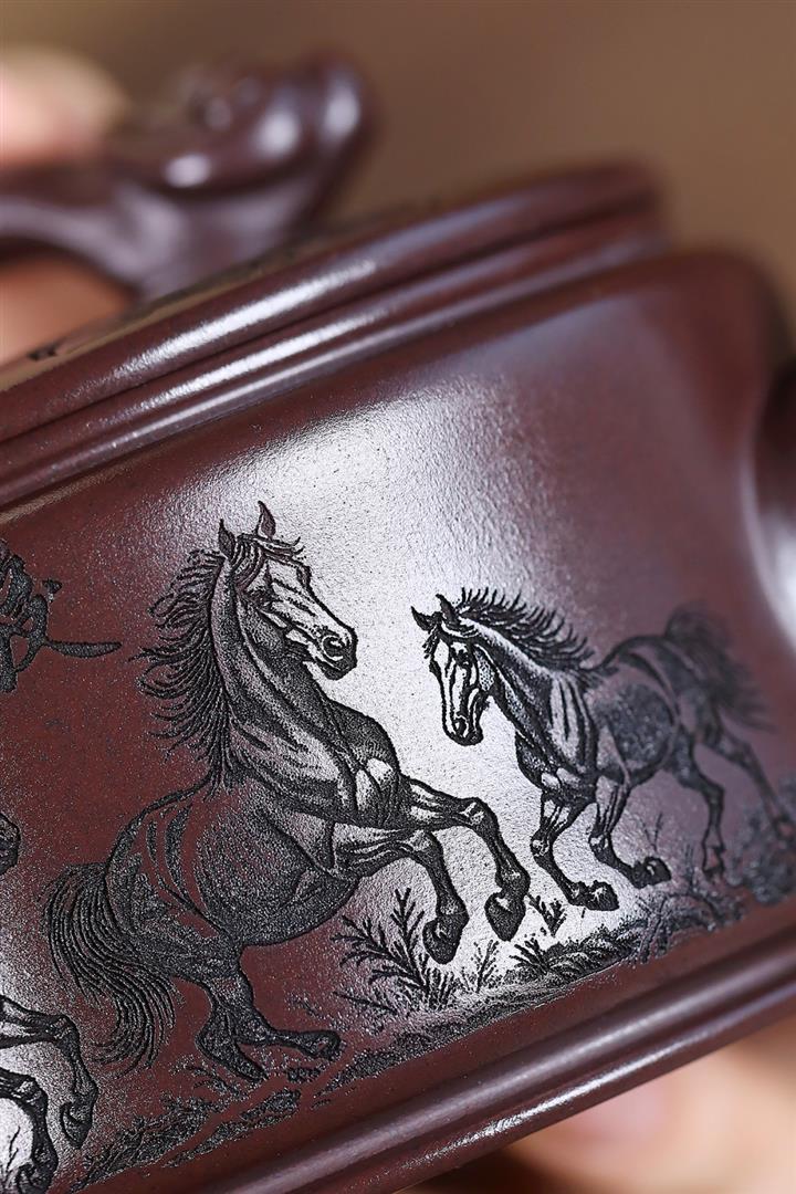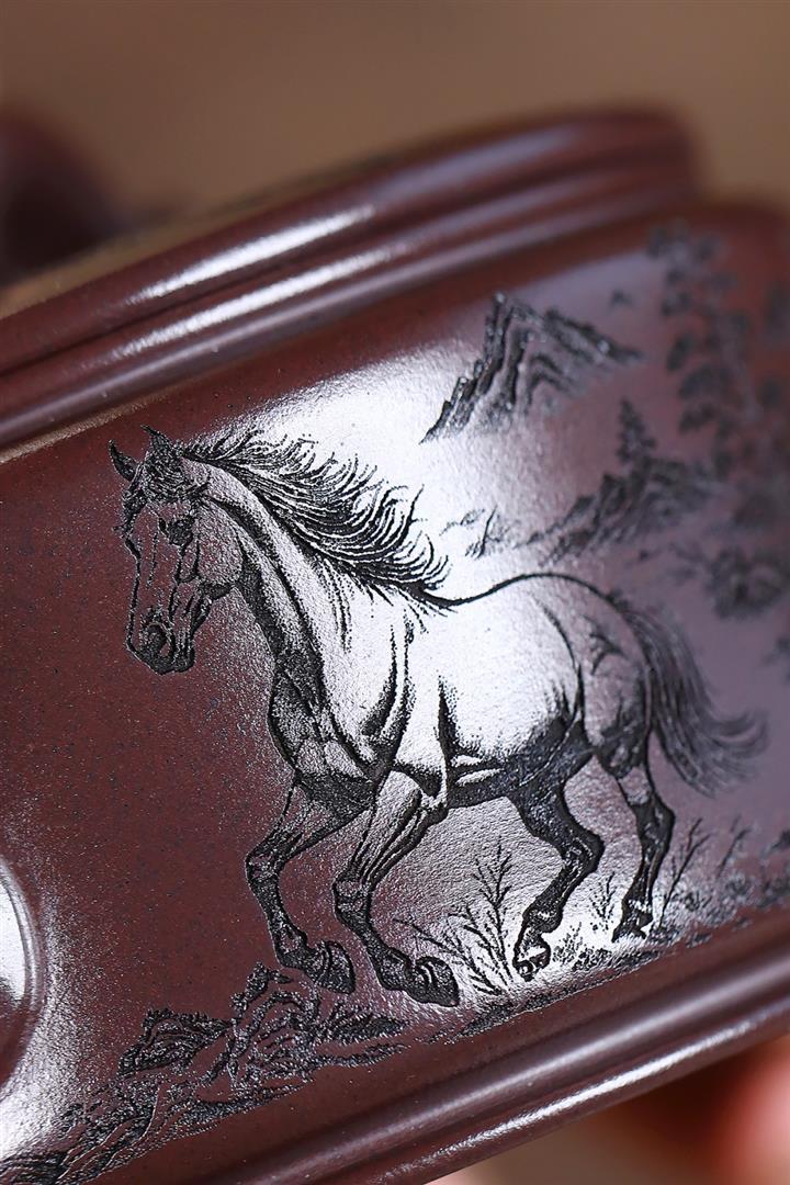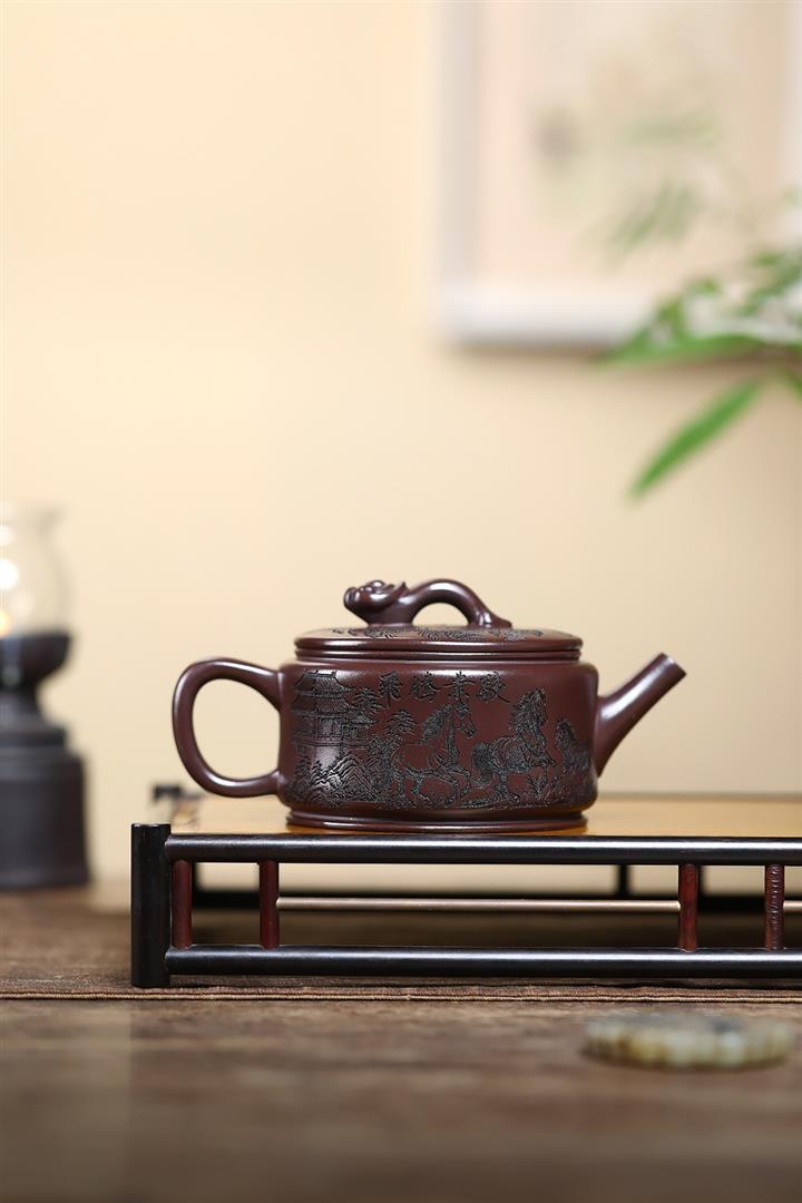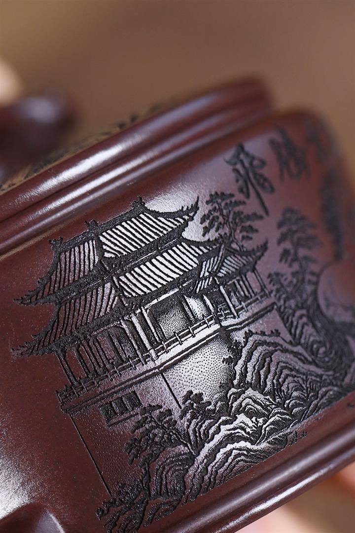 原礦老紫泥刻繪六方龍紋井欄壺POT4295