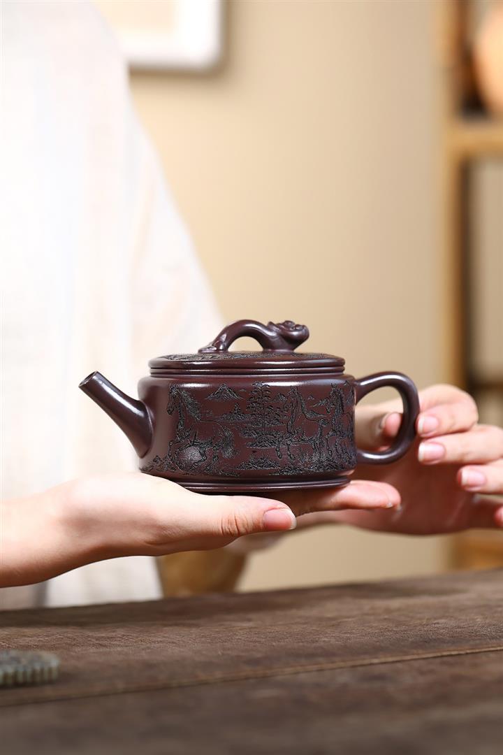 【作品介紹】此款壺形線條流暢,壺把,壺嘴,壺身壹氣呵成栩栩如生,是收藏把玩的好壺,泥料色澤古樸典雅,日久使用,漸露鋒芒,養成變化快,溫潤莊重,用其泡茶,使用的年代久,壺身就溫潤,泡出來的茶湯也就醇郁芳馨。