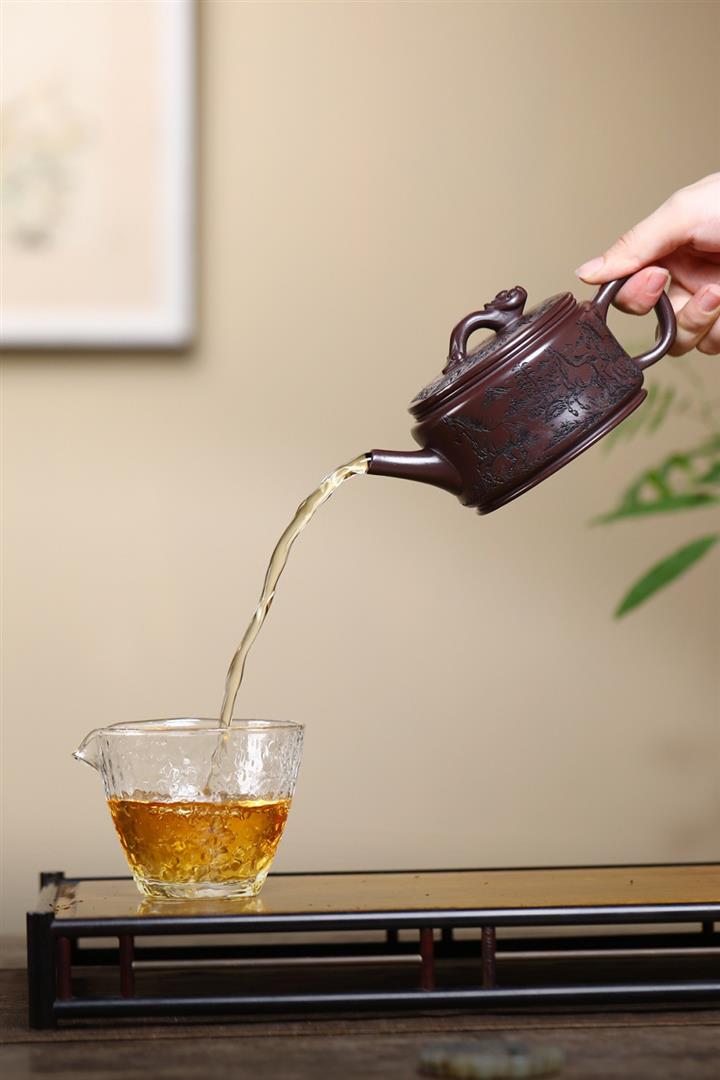 【泥料特點】砂土氣重,似淳實農民,日久使用,漸露鋒芒,養成變化,溫潤莊重。紫砂是壹種雙重氣孔結構的多孔性材質,氣孔微細,密度高。用紫砂壺沏茶,不失原味,且香不渙散,得茶之真香真味。紫砂使用越久,壺身色澤越發光亮照人,氣韻溫雅。紫砂壺長久使用器身會因撫摸擦拭,變得越發溫潤光澤。