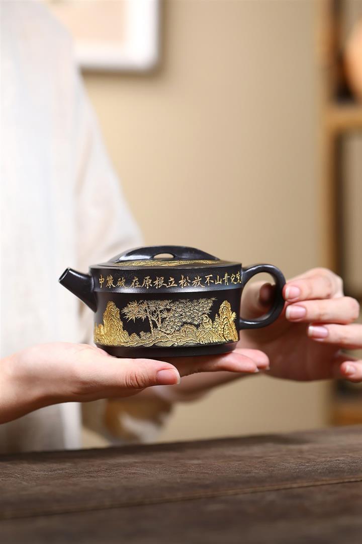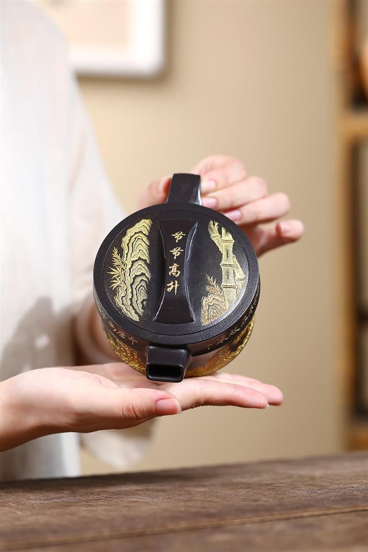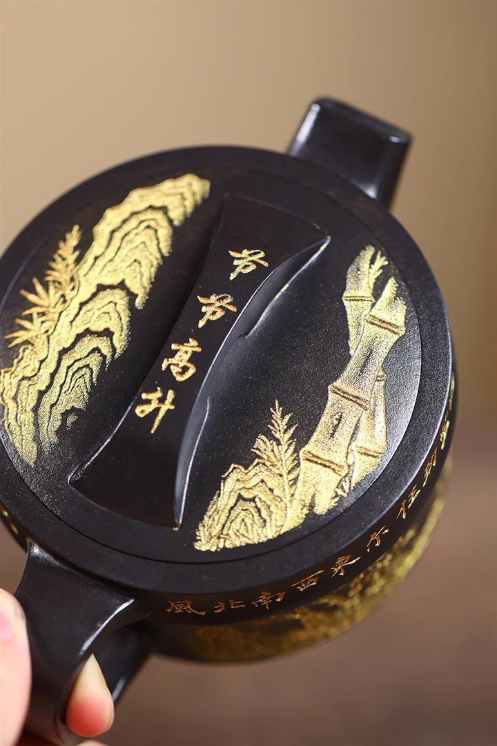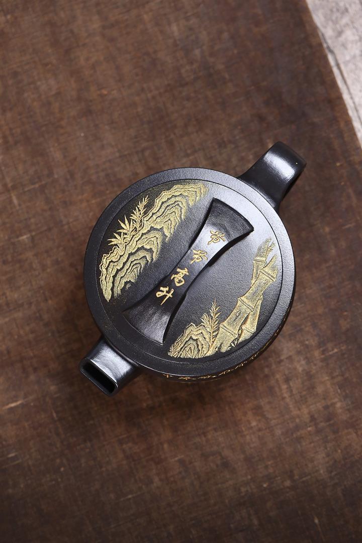300cc原礦石黃泥金篆竹韻瓦當壺POT8249