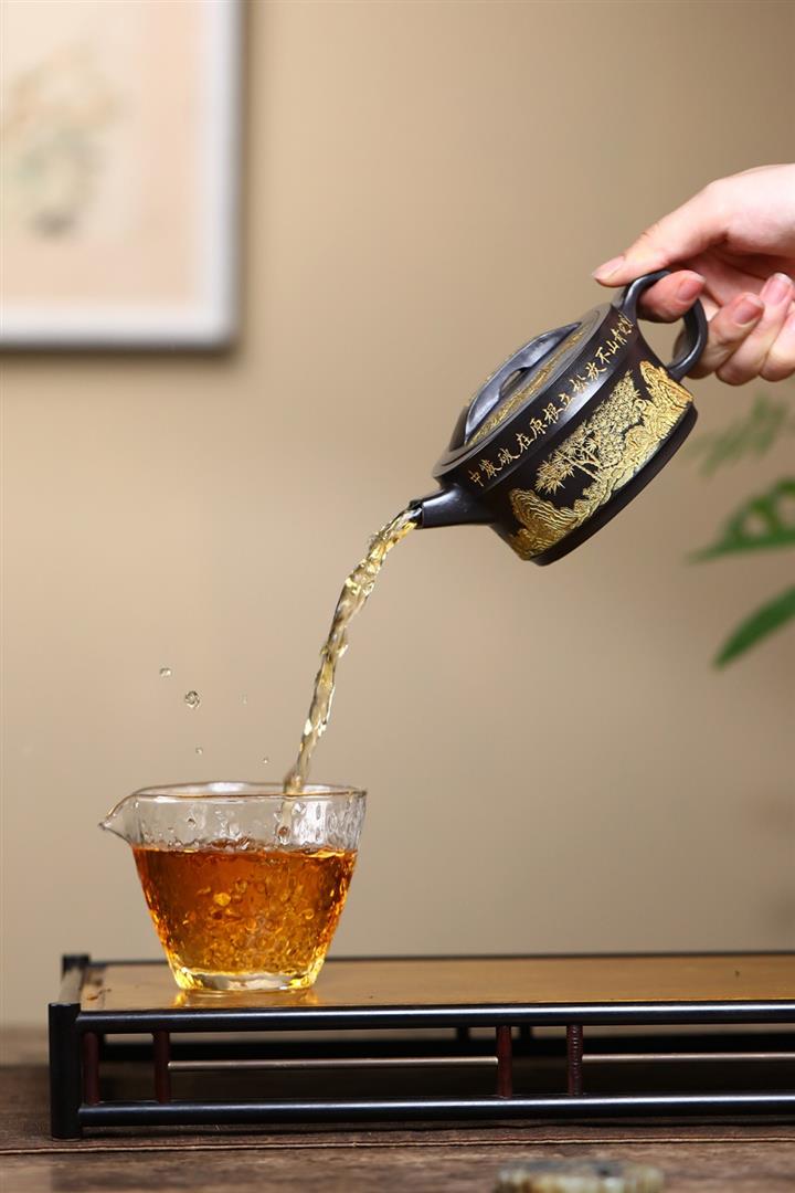 【泥料特點】砂土氣重,似淳實農民,日久使用,漸露鋒芒,養成變化,溫潤莊重。紫砂是壹種雙重氣孔結構的多孔性材質,氣孔微細,密度高。用紫砂壺沏茶,不失原味,且香不渙散,得茶之真香真味。紫砂使用越久,壺身色澤越發光亮照人,氣韻溫雅。紫砂壺長久使用器身會因撫摸擦拭,變得越發溫潤光澤。