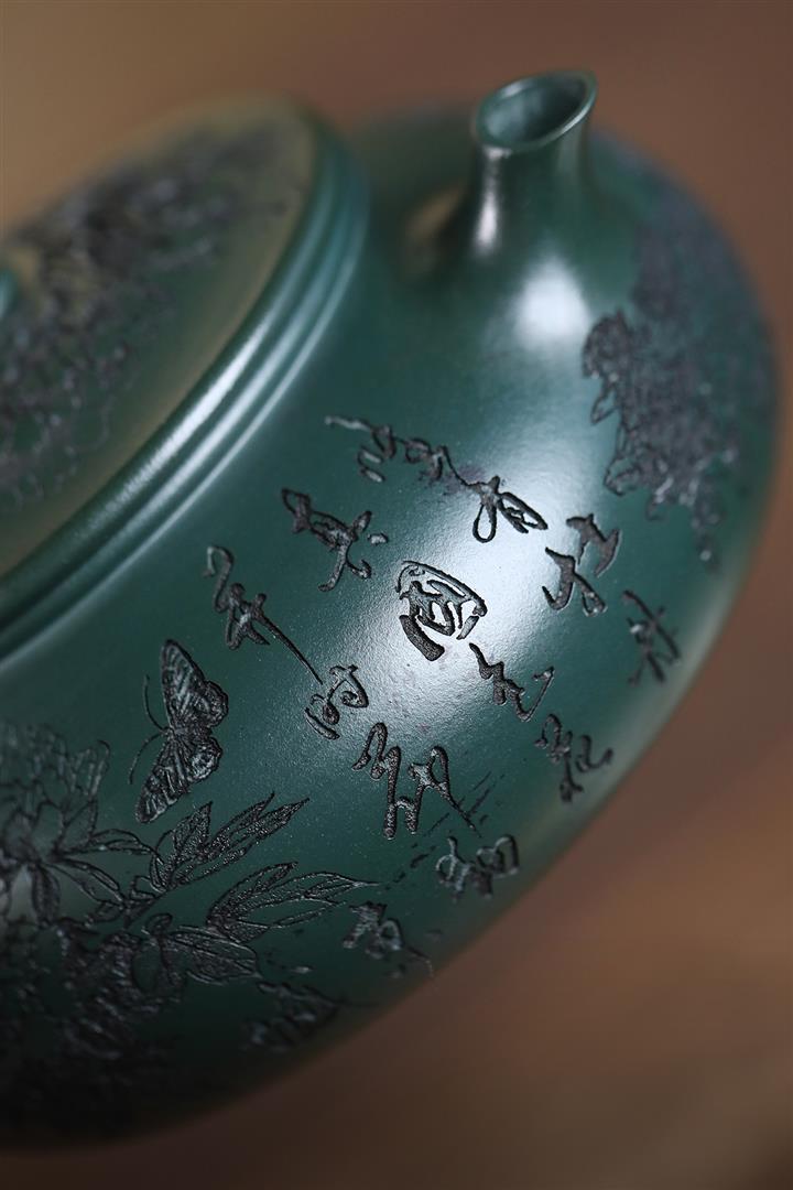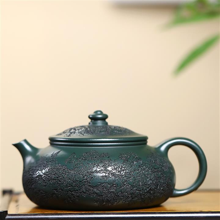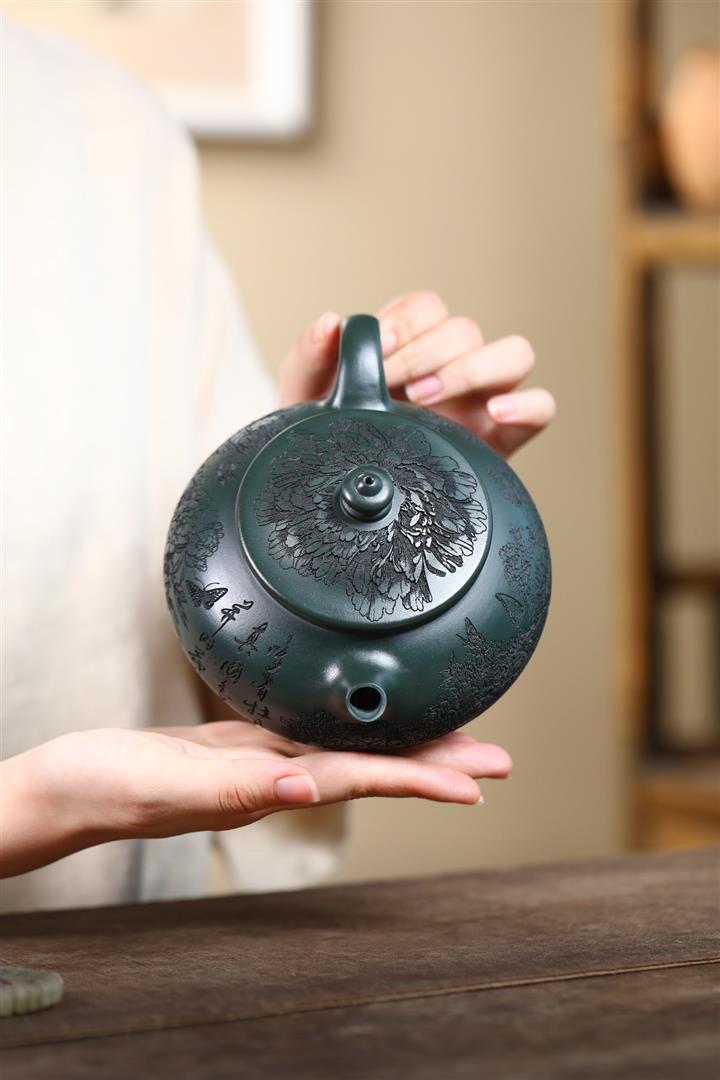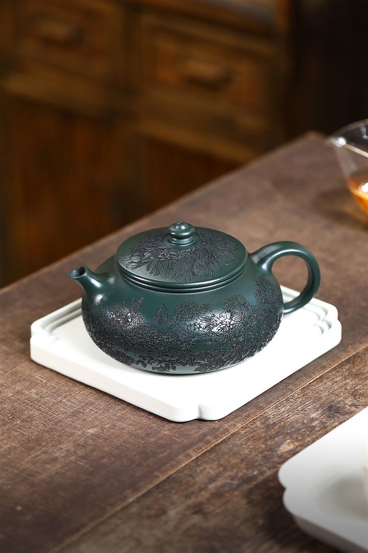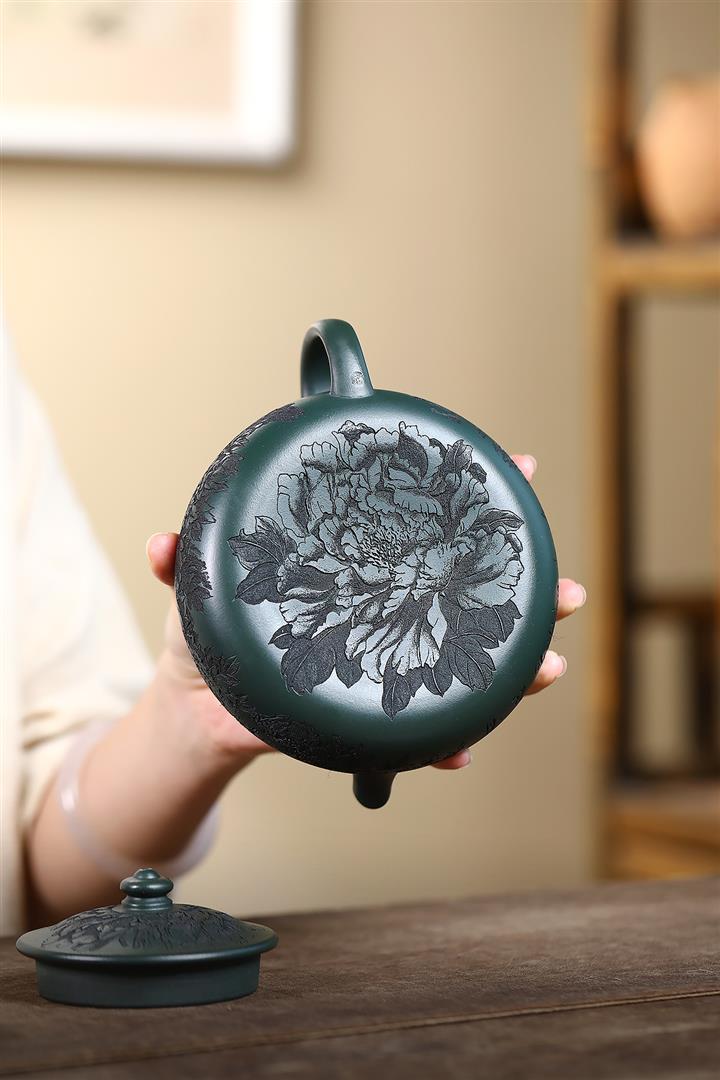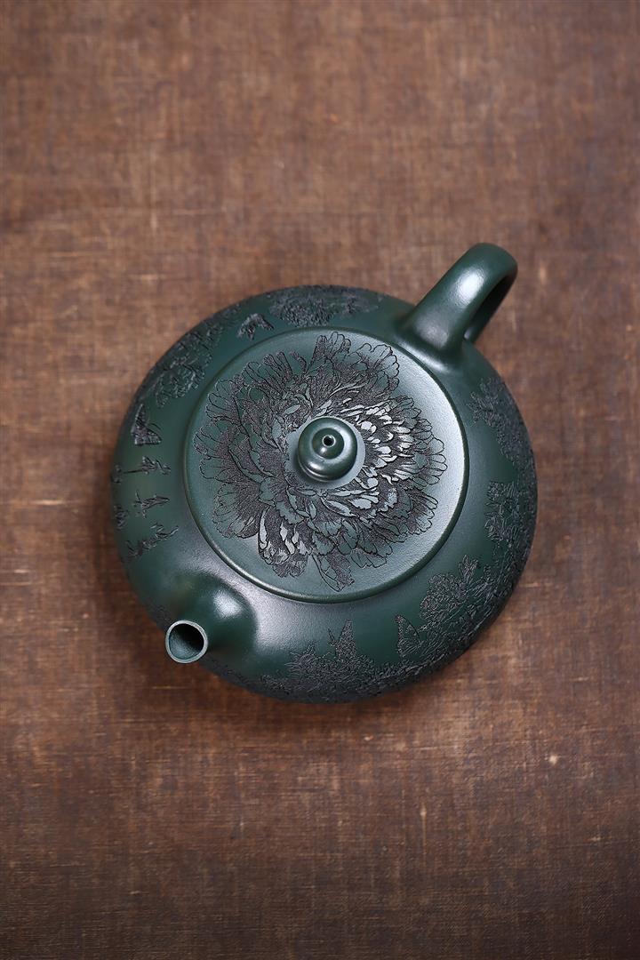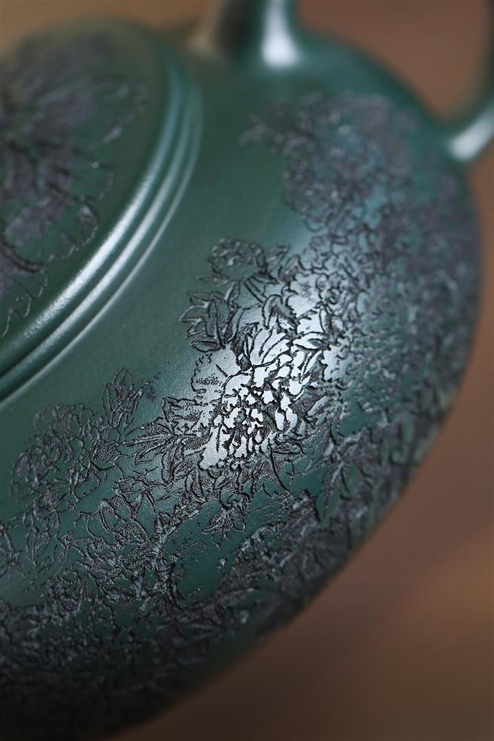 520cc翡翠綠泥花開富貴牡丹寒江茶壺POT8281