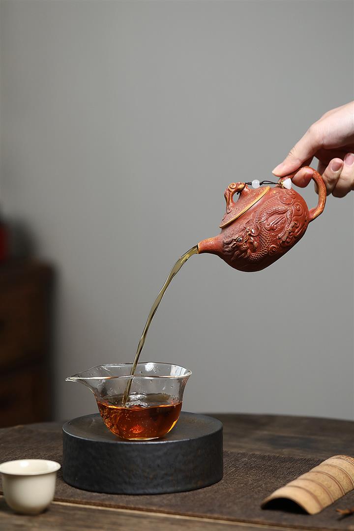 【泥料特點】砂土氣重,似淳實農民,日久使用,漸露鋒芒,養成變化,溫潤莊重。紫砂是壹種雙重氣孔結構的多孔性材質,氣孔微細,密度高。用紫砂壺沏茶,不失原味,且香不渙散,得茶之真香真味。紫砂使用越久,壺身色澤越發光亮照人,氣韻溫雅。紫砂壺長久使用器身會因撫摸擦拭,變得越發溫潤光澤。