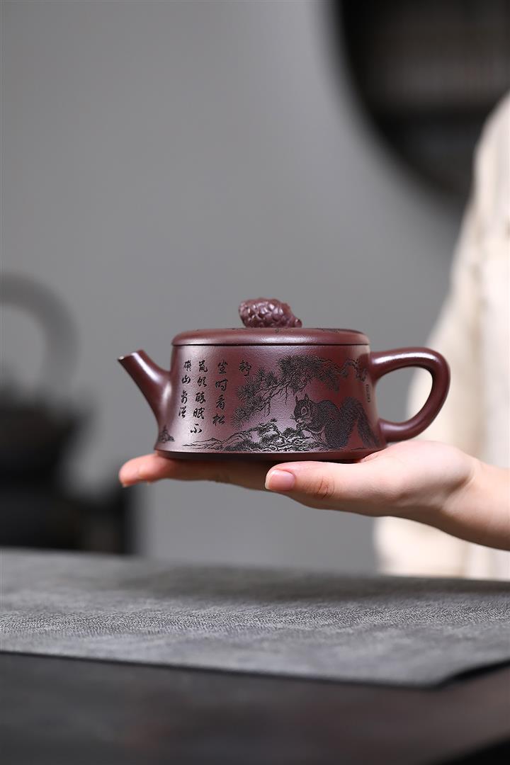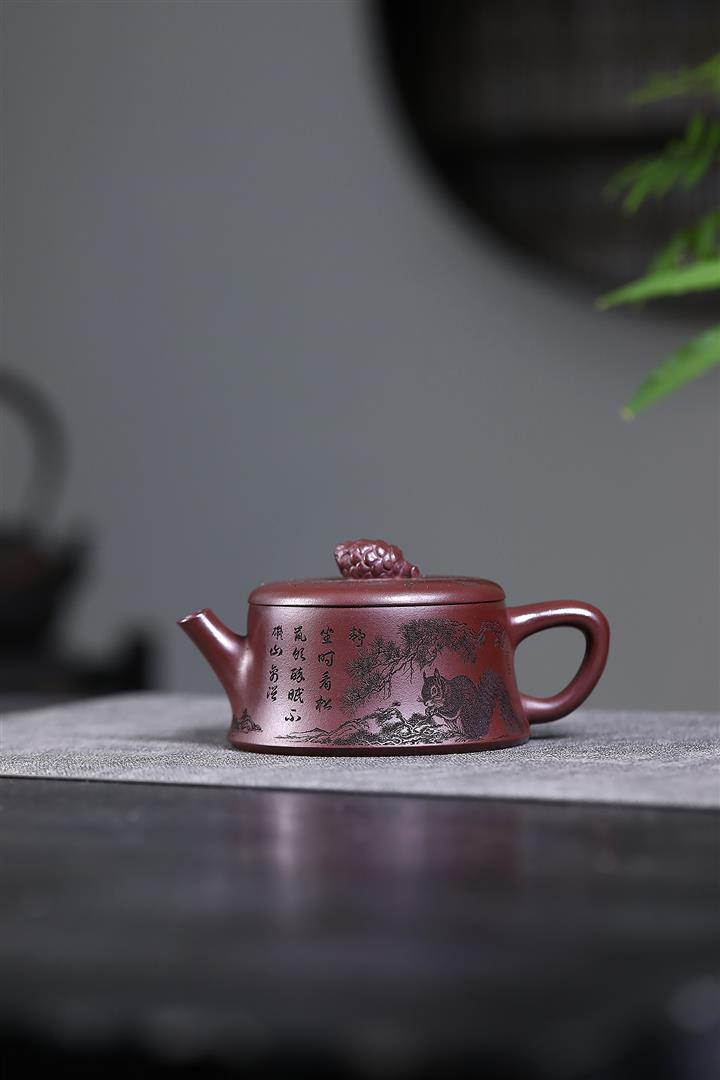300cc原礦老紫泥碩果累累松鼠漢瓦茶壺POT8287