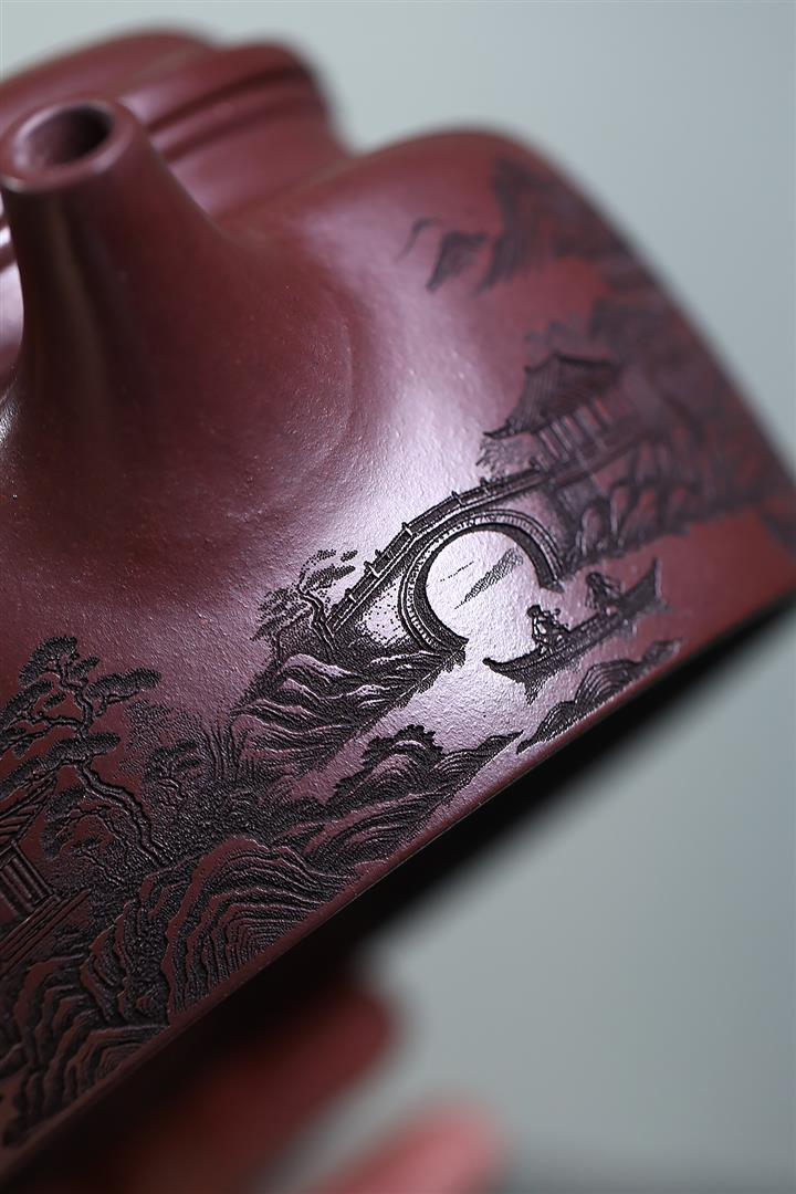 原礦革紫泥純手工刻繪樹樁茶壺POT6820