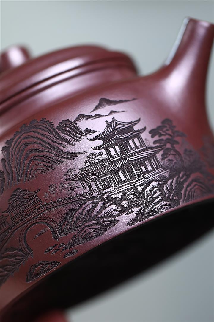 450cc原礦紫泥滿刻大德鐘茶壺POT8290