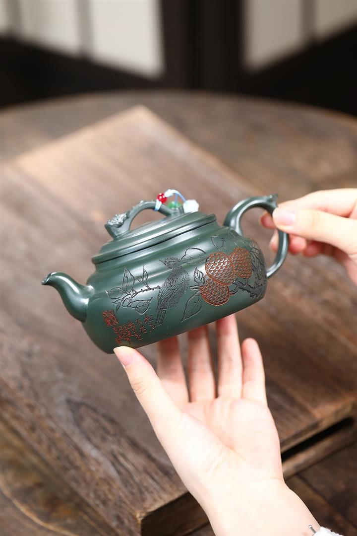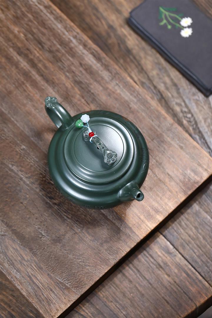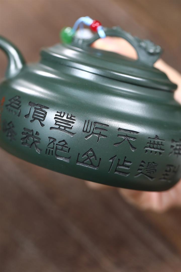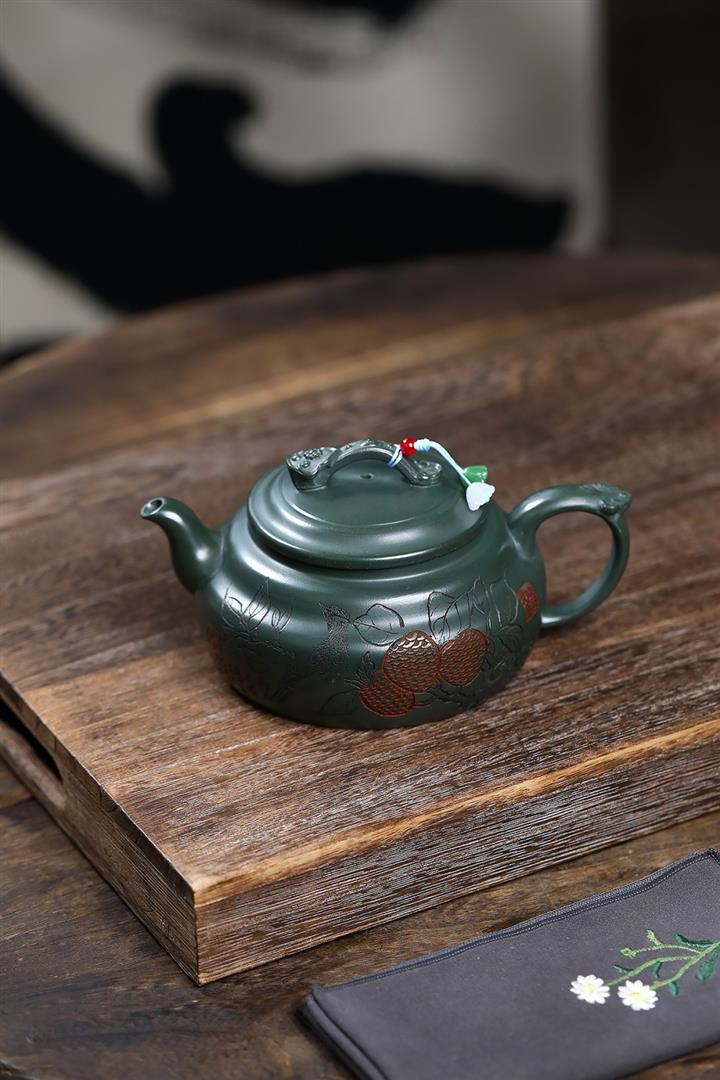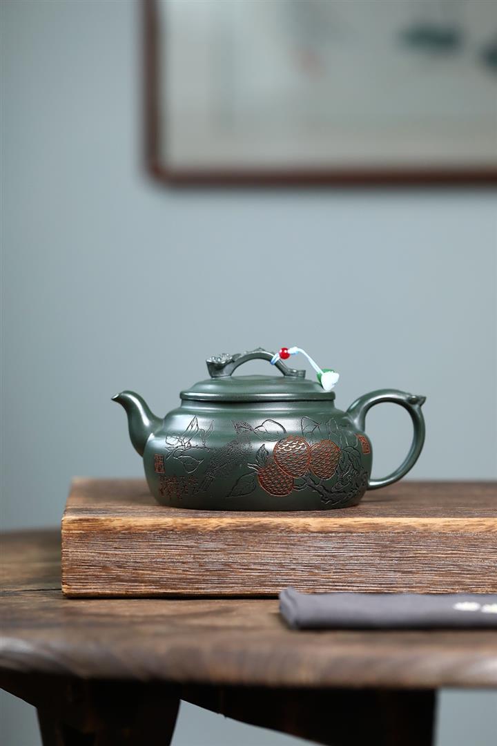 400cc原礦墨綠泥刻繪如意松趣茶壺POT8304