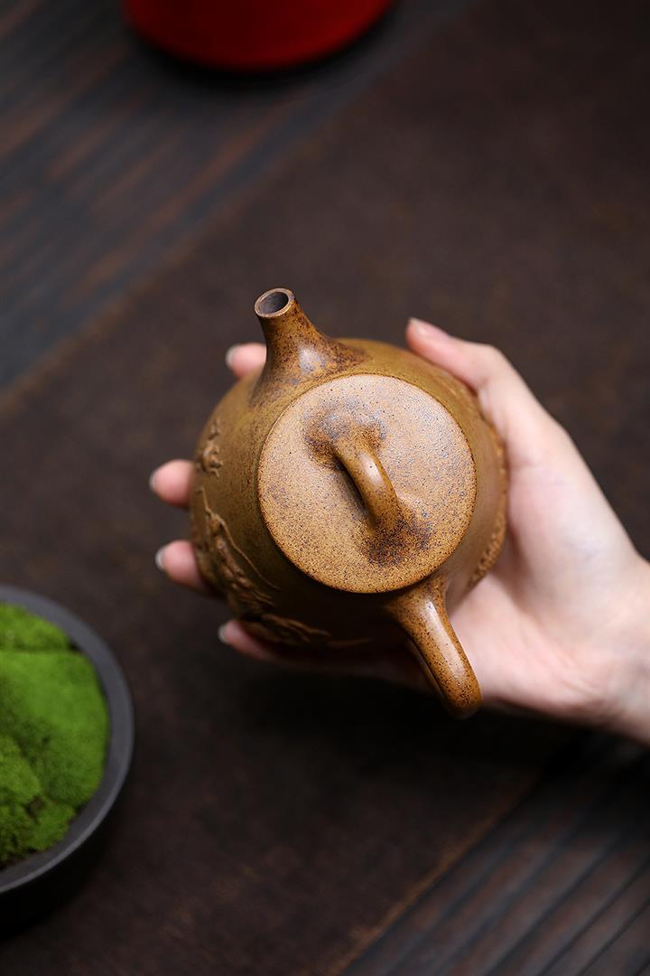 【泥料特點】砂土氣重,似淳實農民,日久使用,漸露鋒芒,養成變化,溫潤莊重。紫砂是壹種雙重氣孔結構的多孔性材質,氣孔微細,密度高。用紫砂壺沏茶,不失原味,且香不渙散,得茶之真香真味。紫砂使用越久,壺身色澤越發光亮照人,氣韻溫雅。紫砂壺長久使用器身會因撫摸擦拭,變得越發溫潤光澤。