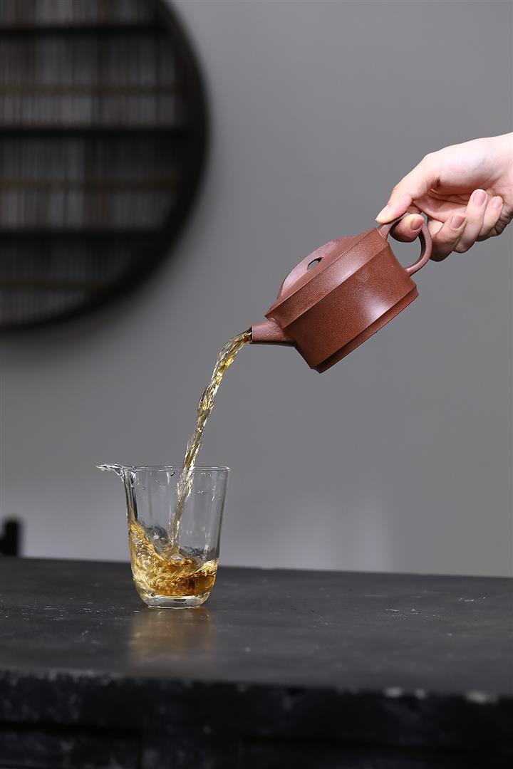 【泥料特點】砂土氣重,似淳實農民,日久使用,漸露鋒芒,養成變化,溫潤莊重。紫砂是壹種雙重氣孔結構的多孔性材質,氣孔微細,密度高。用紫砂壺沏茶,不失原味,且香不渙散,得茶之真香真味。紫砂使用越久,壺身色澤越發光亮照人,氣韻溫雅。紫砂壺長久使用器身會因撫摸擦拭,變得越發溫潤光澤。
