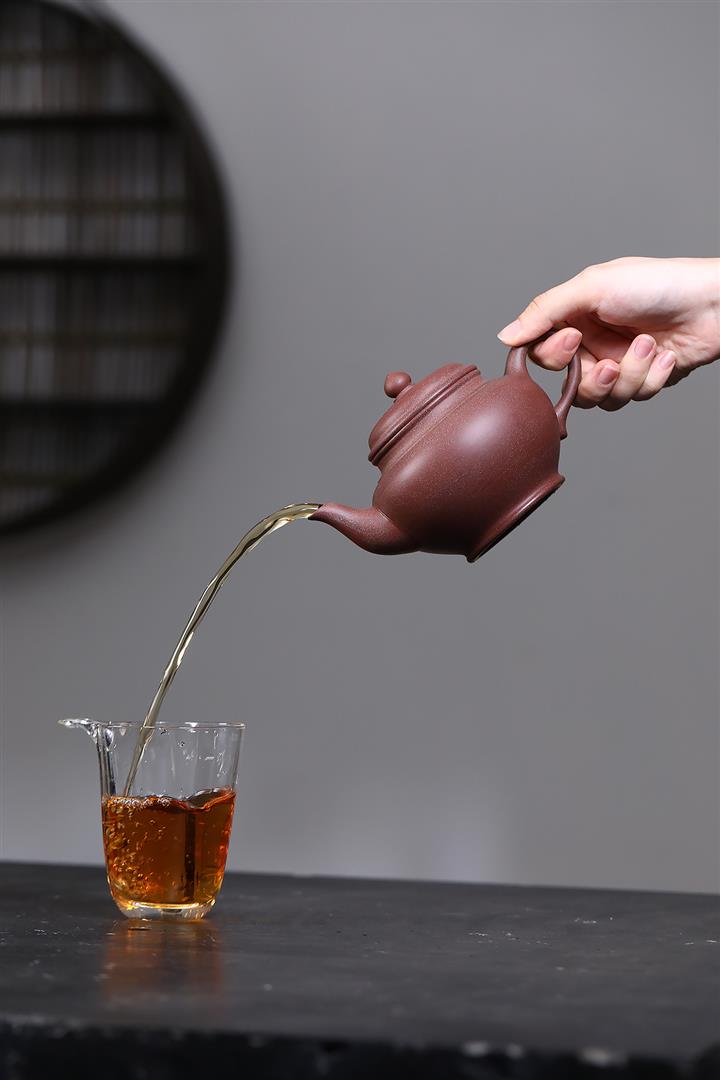 【泥料特點】砂土氣重,似淳實農民,日久使用,漸露鋒芒,養成變化,溫潤莊重。紫砂是壹種雙重氣孔結構的多孔性材質,氣孔微細,密度高。用紫砂壺沏茶,不失原味,且香不渙散,得茶之真香真味。紫砂使用越久,壺身色澤越發光亮照人,氣韻溫雅。紫砂壺長久使用器身會因撫摸擦拭,變得越發溫潤光澤。