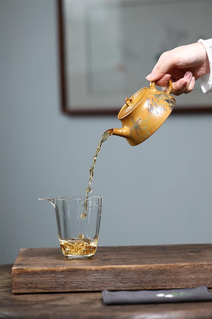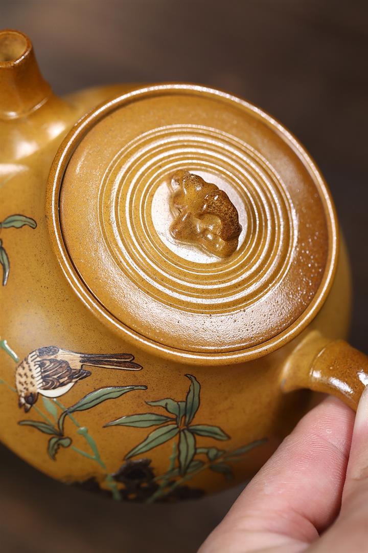 【泥料特點】砂土氣重,似淳實農民,日久使用,漸露鋒芒,養成變化,溫潤莊重。紫砂是壹種雙重氣孔結構的多孔性材質,氣孔微細,密度高。用紫砂壺沏茶,不失原味,且香不渙散,得茶之真香真味。紫砂使用越久,壺身色澤越發光亮照人,氣韻溫雅。紫砂壺長久使用器身會因撫摸擦拭,變得越發溫潤光澤。