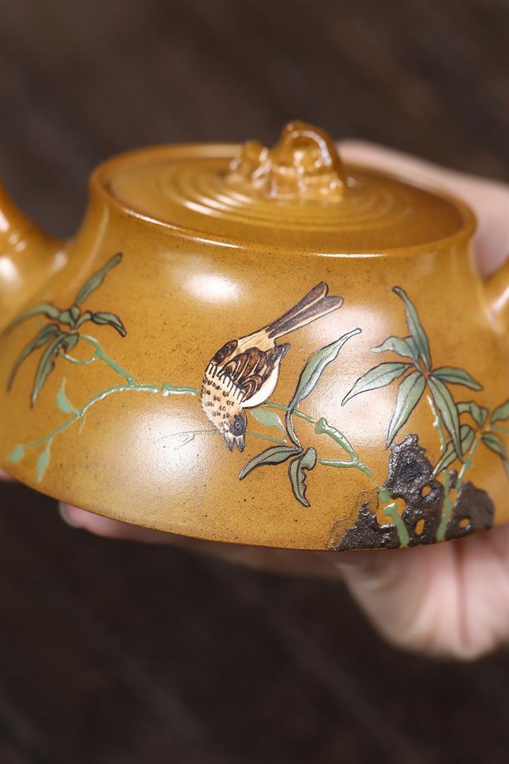 【作品介紹】此款壺形線條流暢,壺把,壺嘴,壺身壹氣呵成栩栩如生,是收藏把玩的好壺,泥料色澤古樸典雅,日久使用,漸露鋒芒,養成變化快,溫潤莊重,用其泡茶,使用的年代久,壺身就溫潤,泡出來的茶湯也就醇郁芳馨。