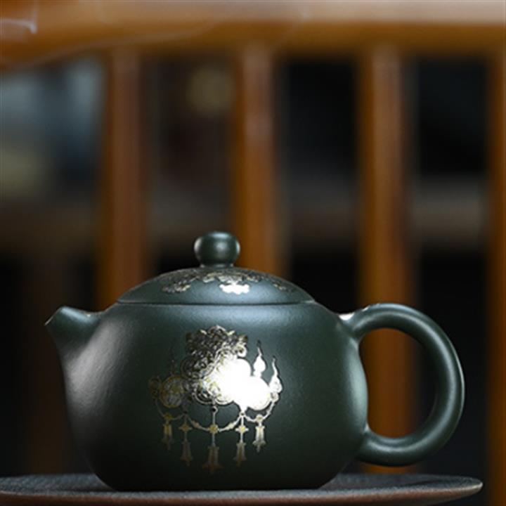 原礦翡翠綠泥刻繪漢韻茶壺POT7866