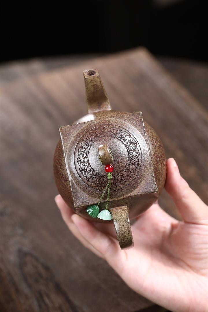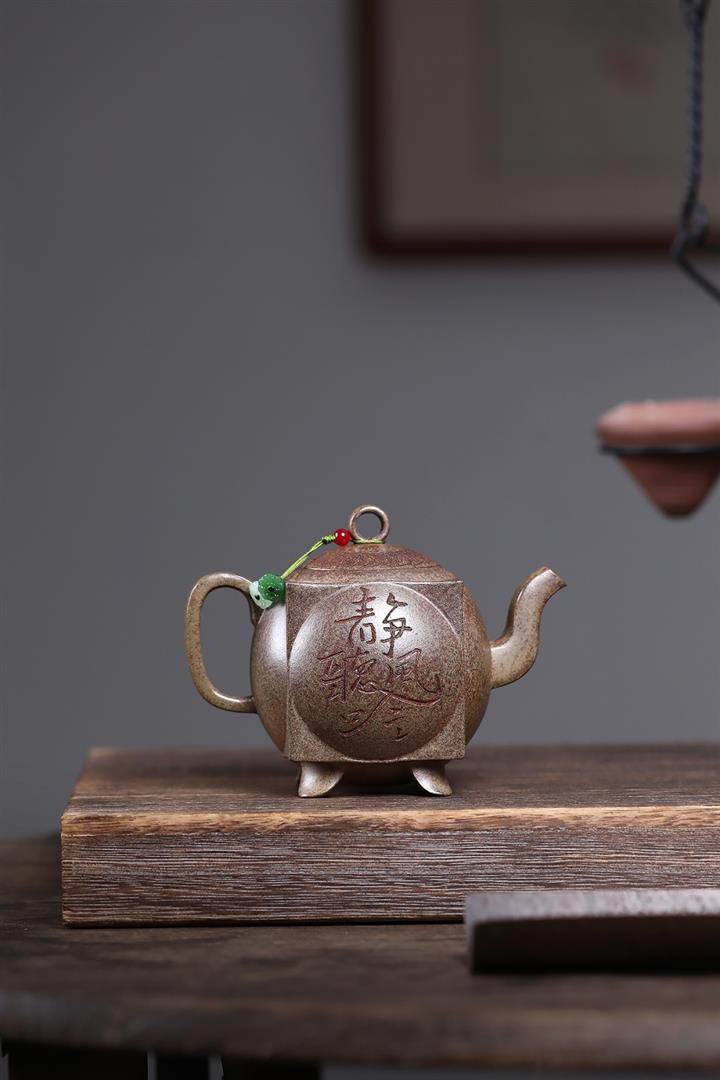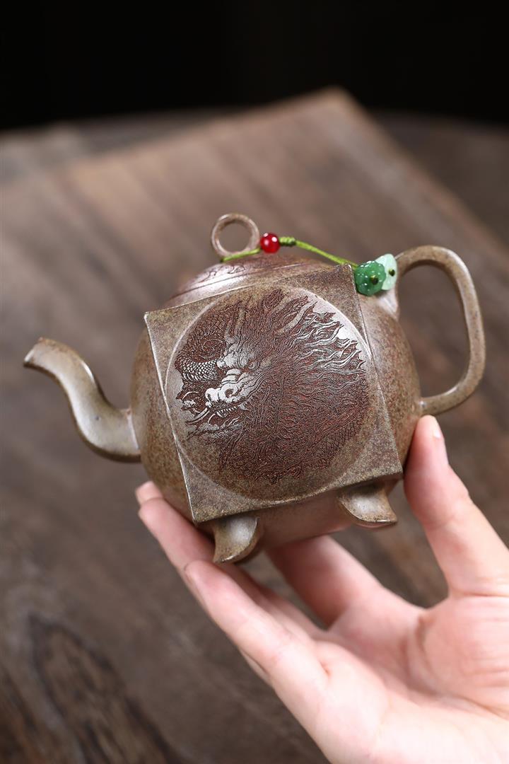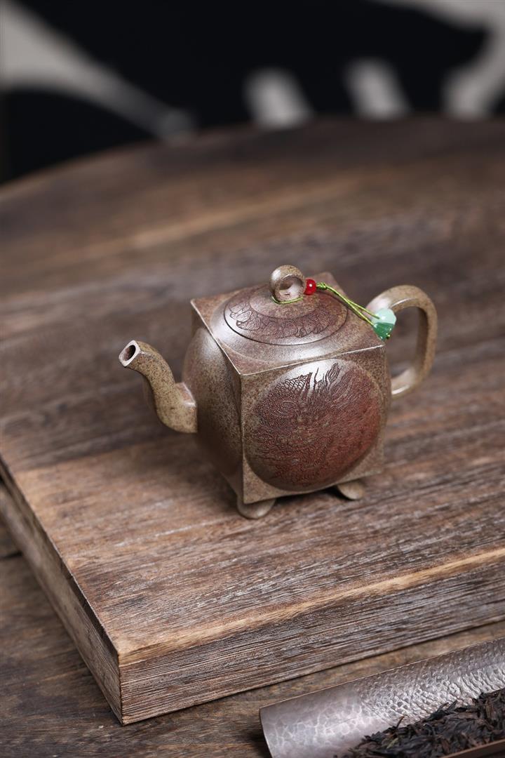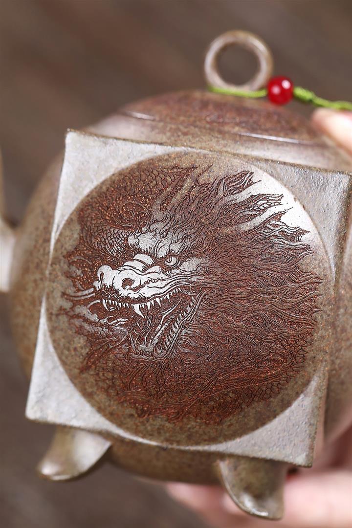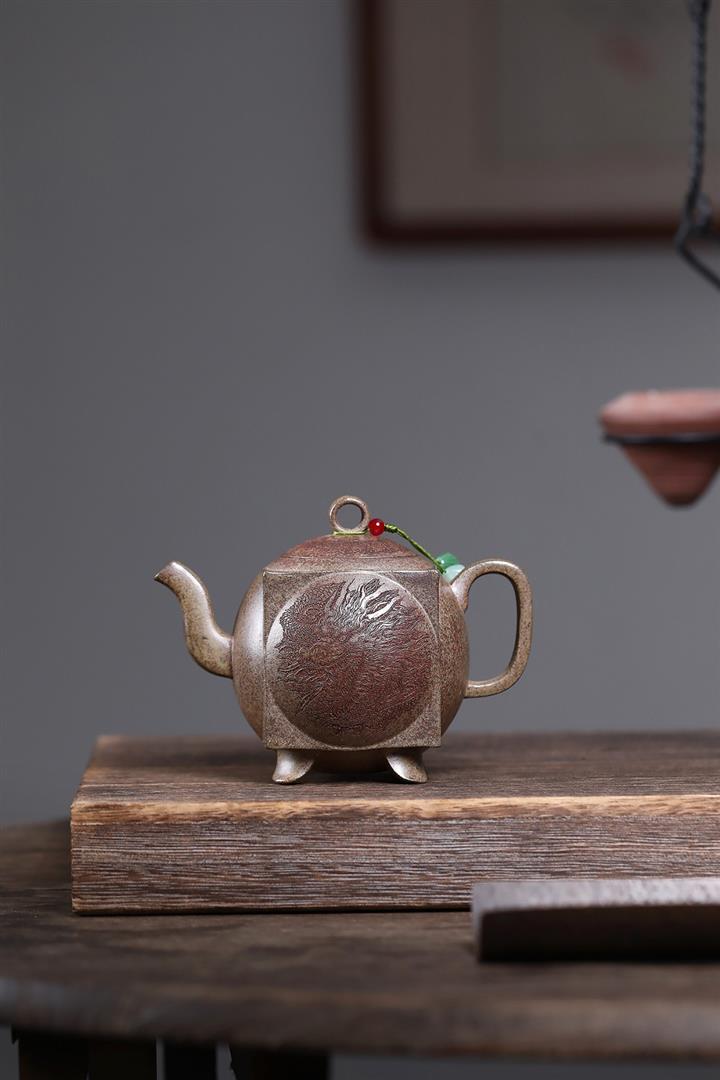 原礦黑泥刻繪鴻運當頭茶壺POT6954