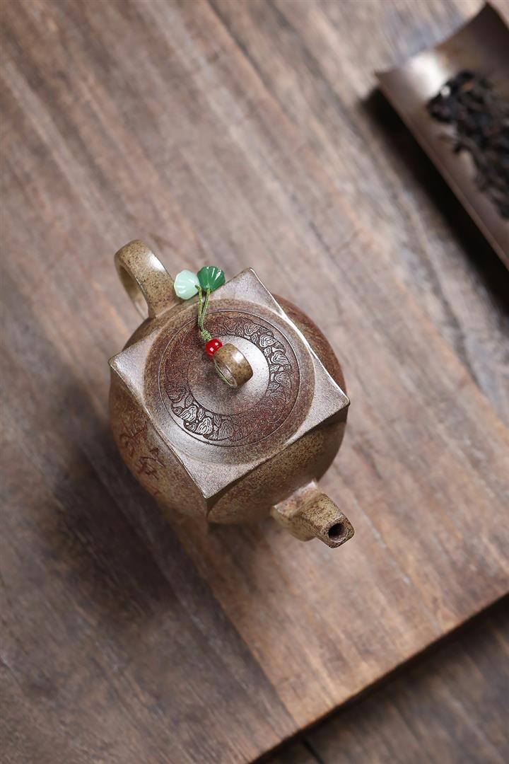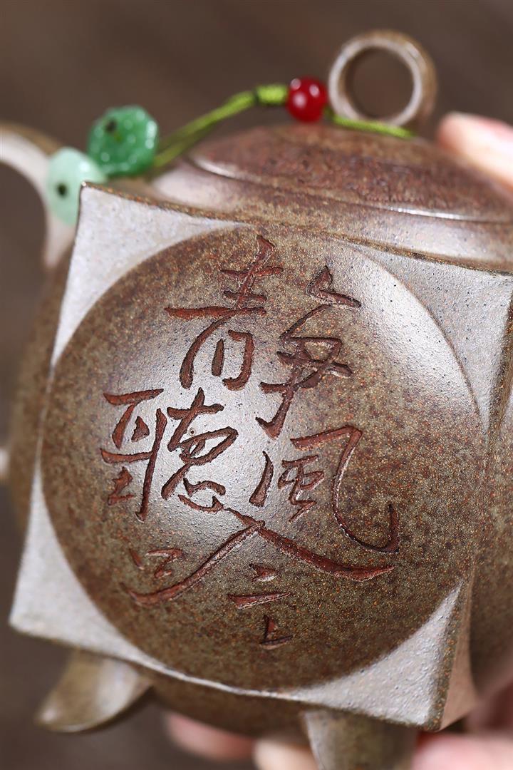 原礦天青泥手工厚德載物四方茶壺POT6960