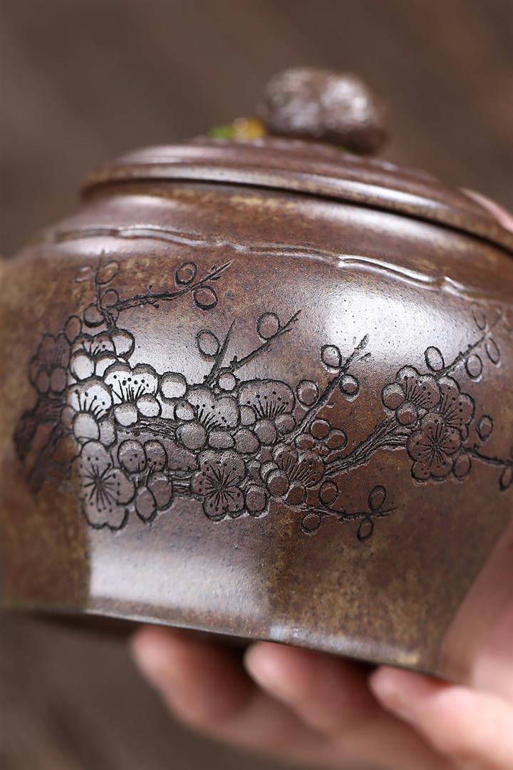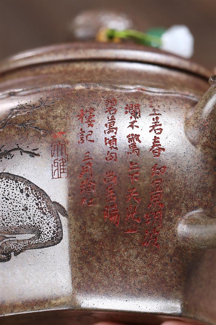 原礦紫泥筋紋花蕾壺純手工刻繪pot3706