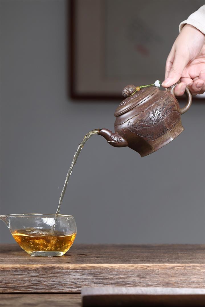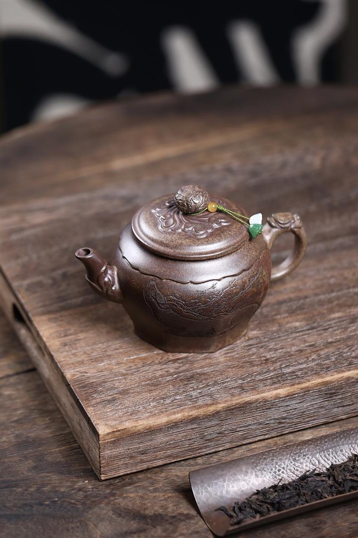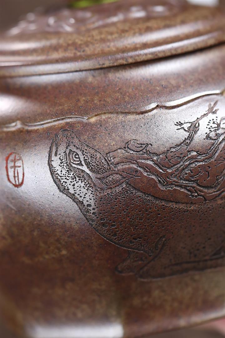 手工紫砂壺證書雙鳳賜福原礦老紫泥POT3633