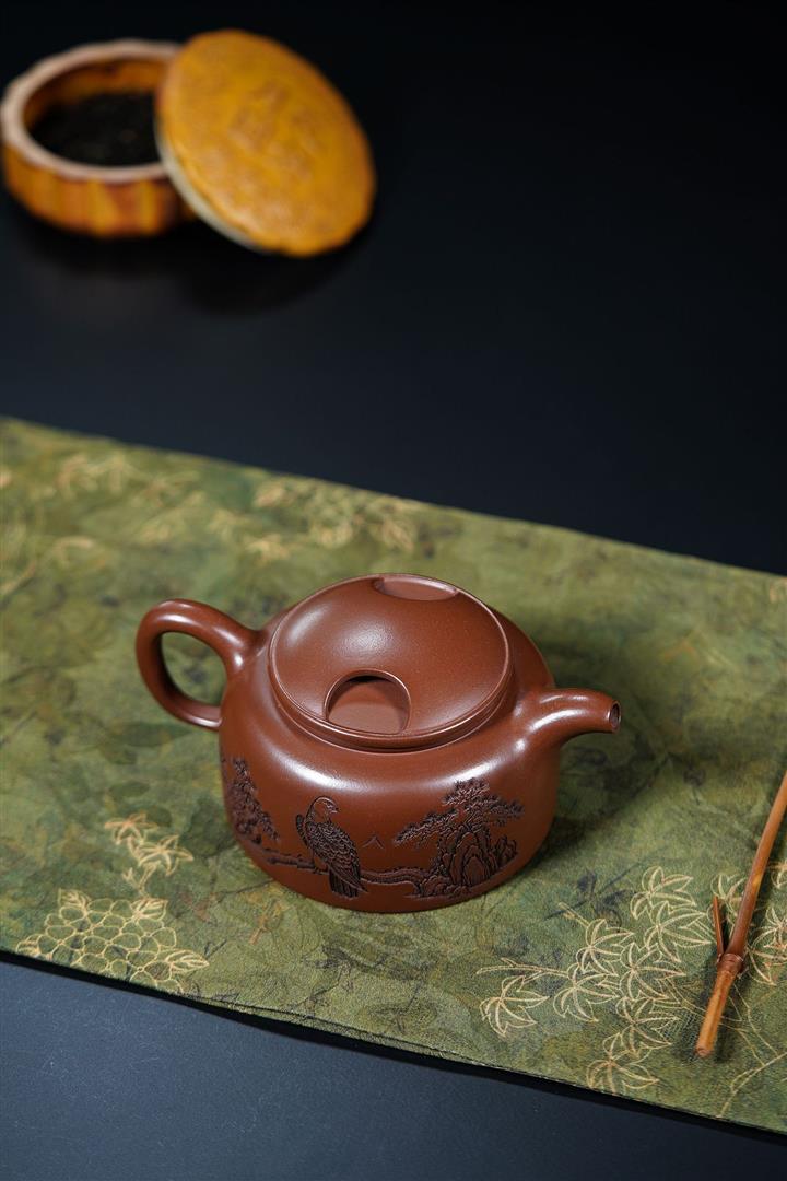 原礦大紅袍泥繪汲直紫砂壺POT4813