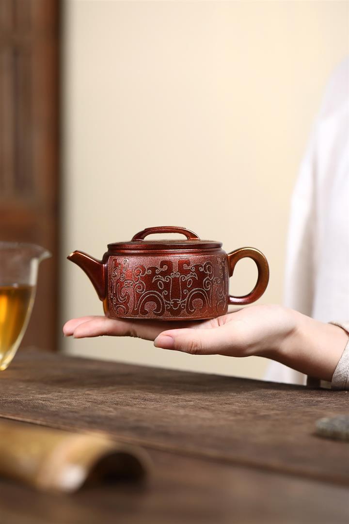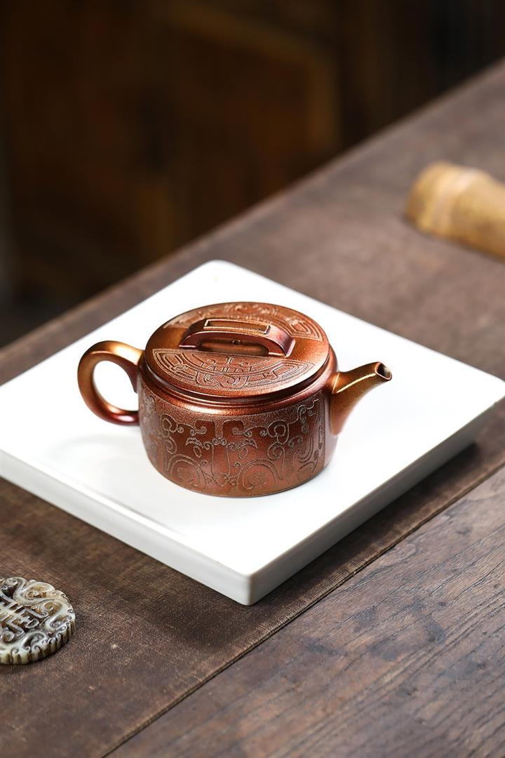 250cc原礦龍血砂貝殼燒金砂龍瓦茶壺POT8480