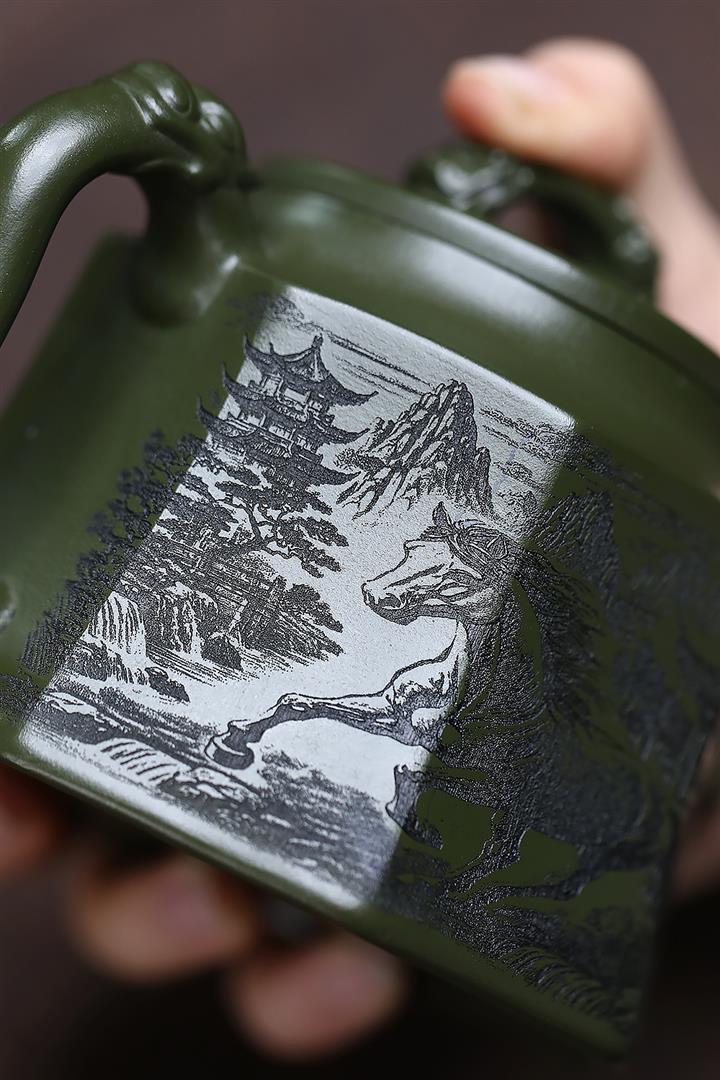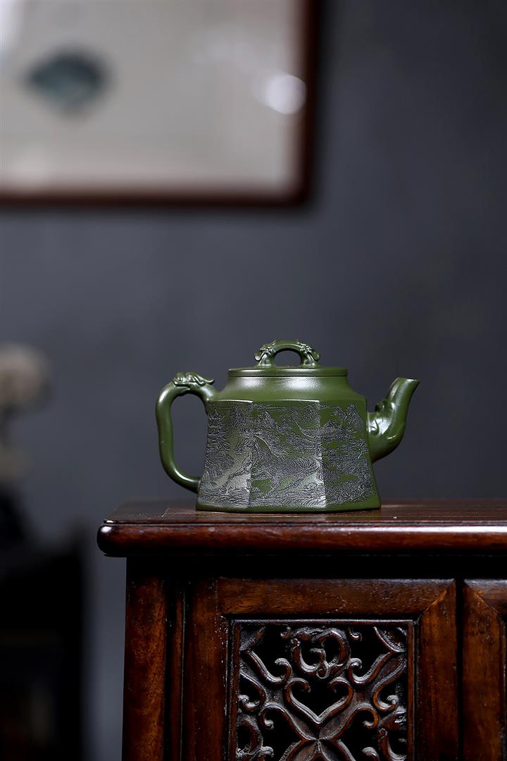 350cc原礦民國綠泥八方龍權泡茶壺POT8484