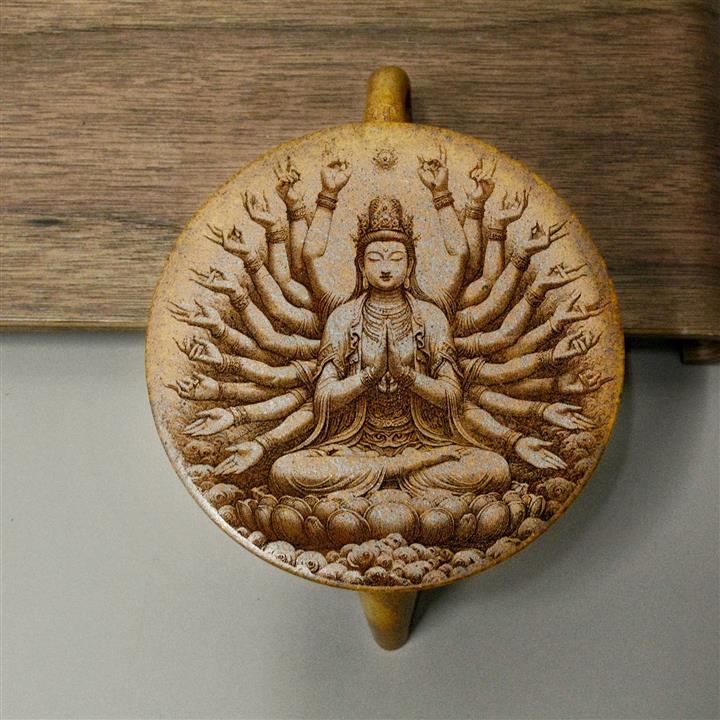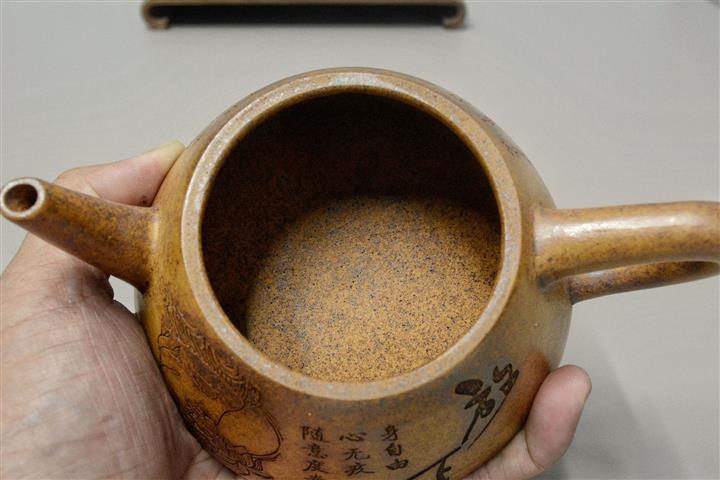 原礦柴燒開花泥滿刻壽桃壺POT7175