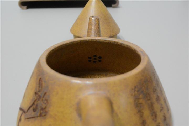 原礦墨綠泥滿刻束腰井欄茶壺POT7171