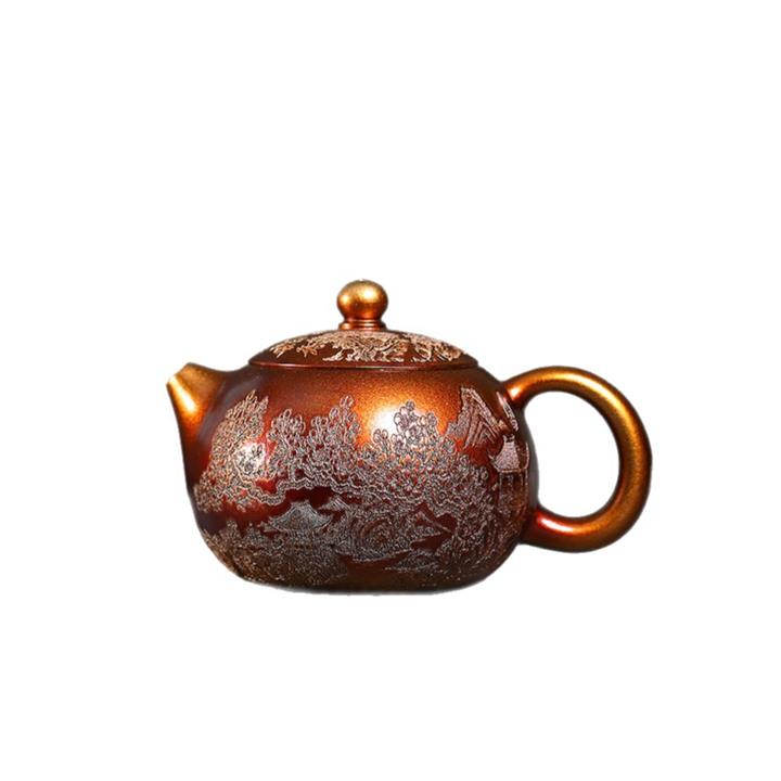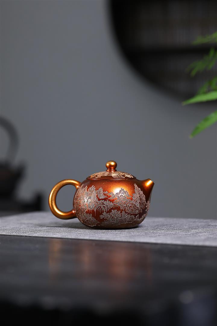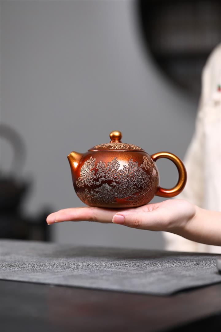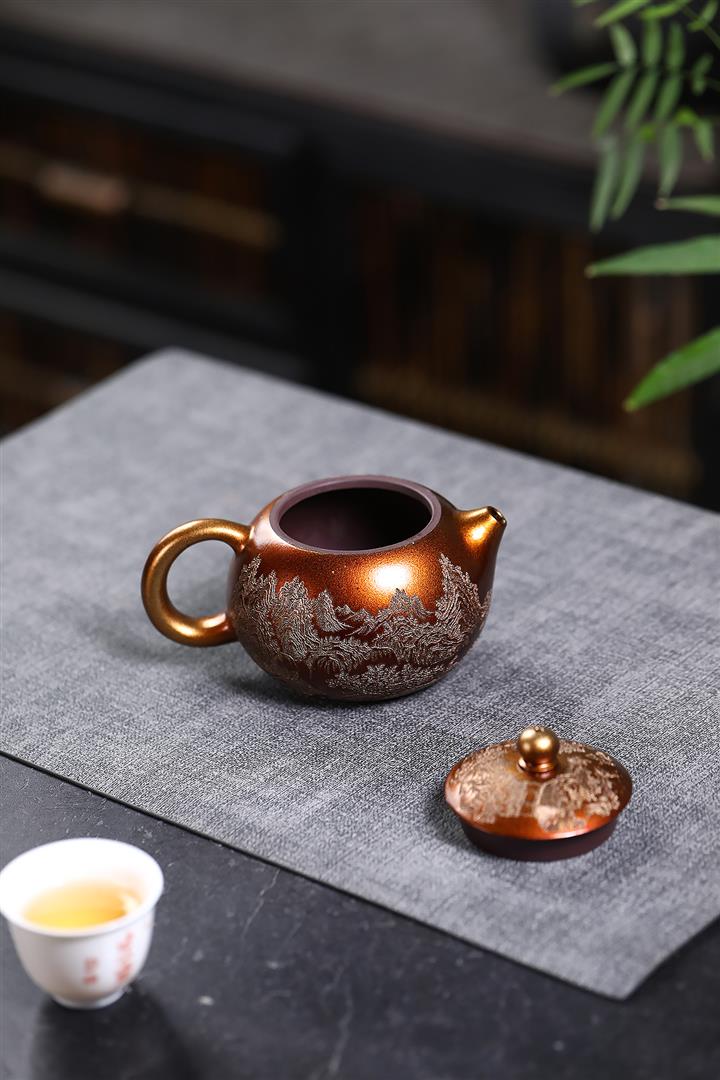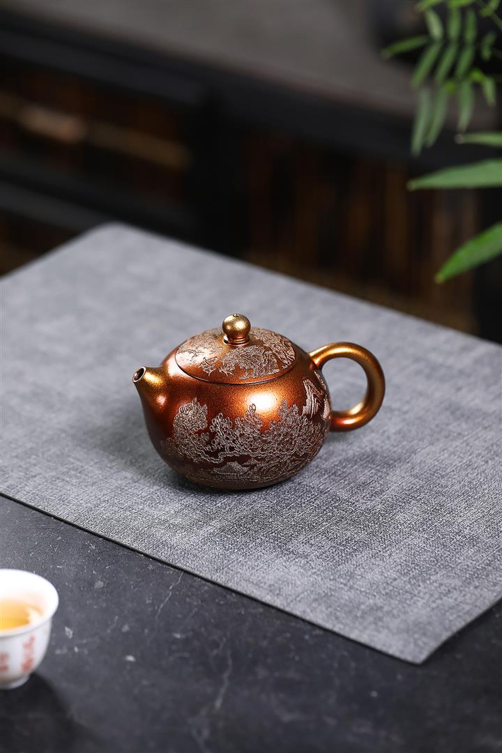 原礦綠泥刻繪漢瓦紫砂壺POT5438