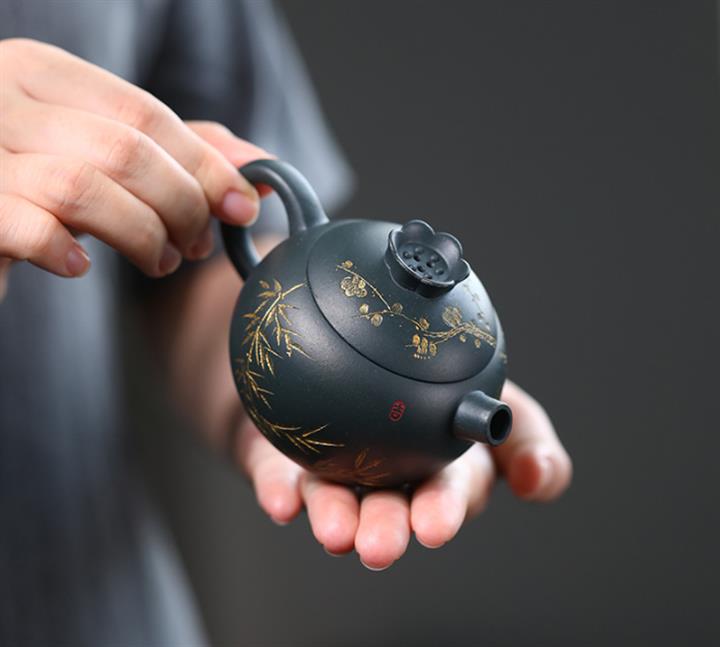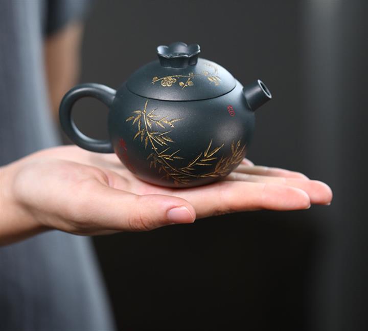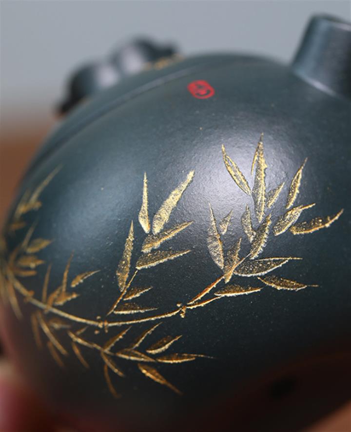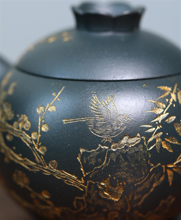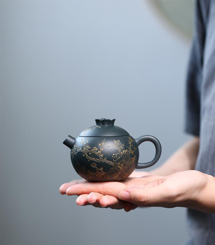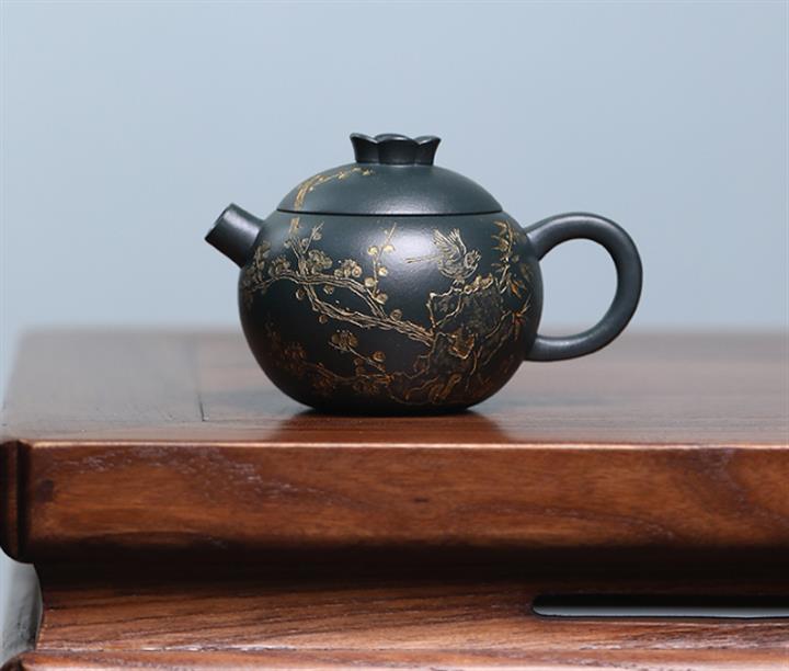 140cc九齡君子蘭墨綠泥小石榴茶壺POT8493