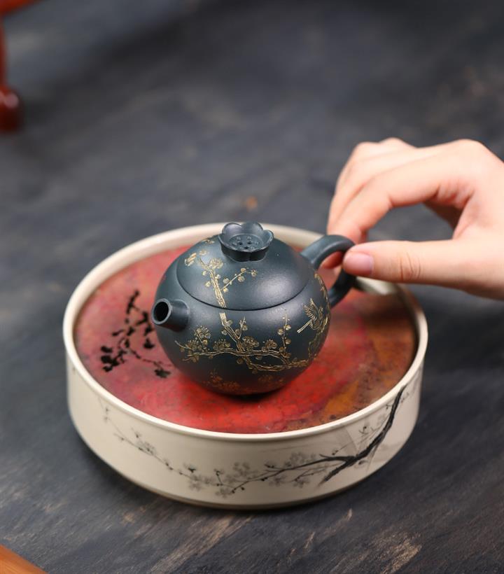 【泥料特點】砂土氣重,似淳實農民,日久使用,漸露鋒芒,養成變化,溫潤莊重。紫砂是壹種雙重氣孔結構的多孔性材質,氣孔微細,密度高。用紫砂壺沏茶,不失原味,且香不渙散,得茶之真香真味。紫砂使用越久,壺身色澤越發光亮照人,氣韻溫雅。紫砂壺長久使用器身會因撫摸擦拭,變得越發溫潤光澤。
