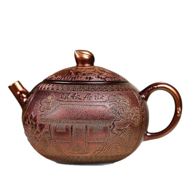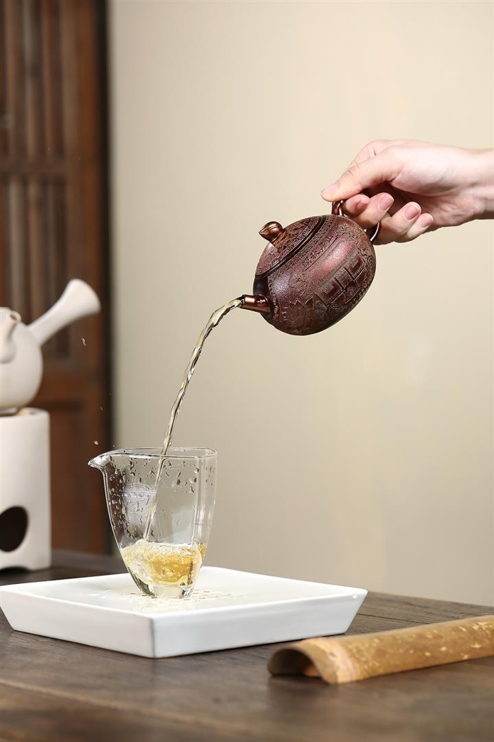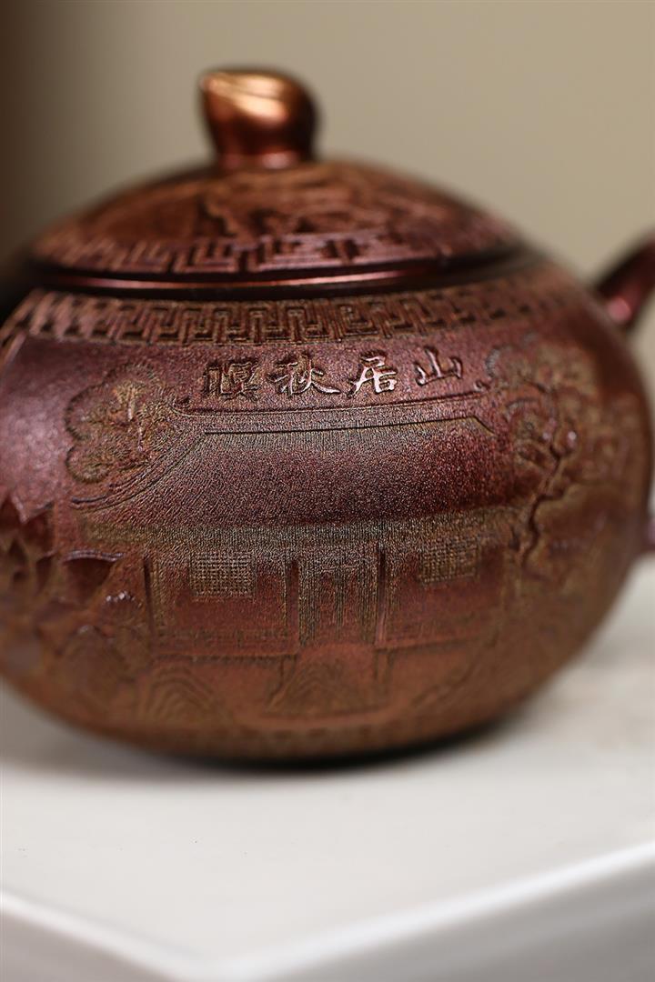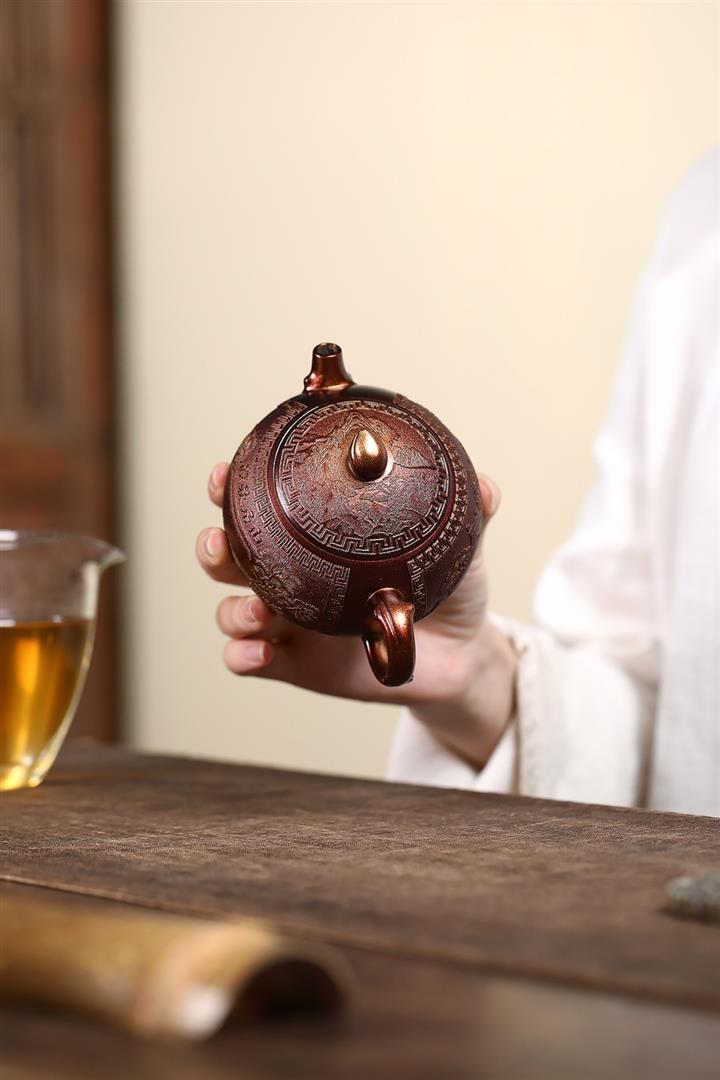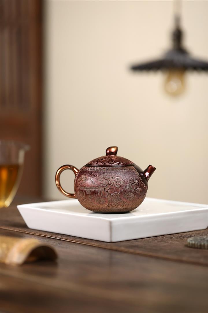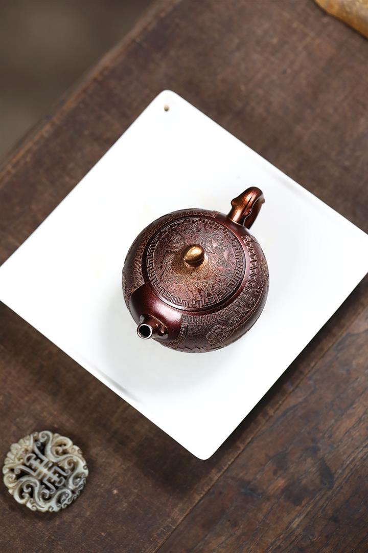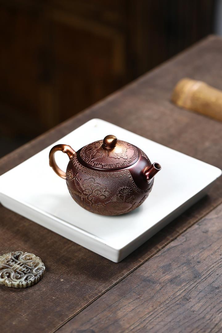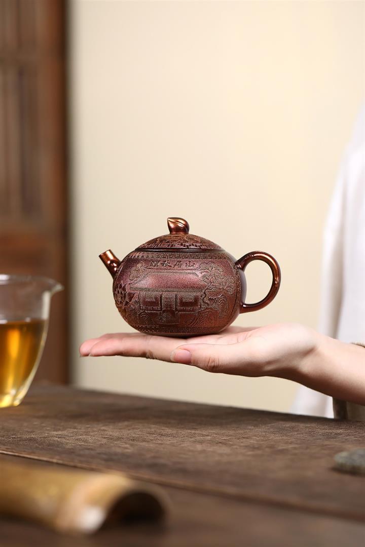 原礦石黃料手工刻繪無求紫砂壺 POT4022