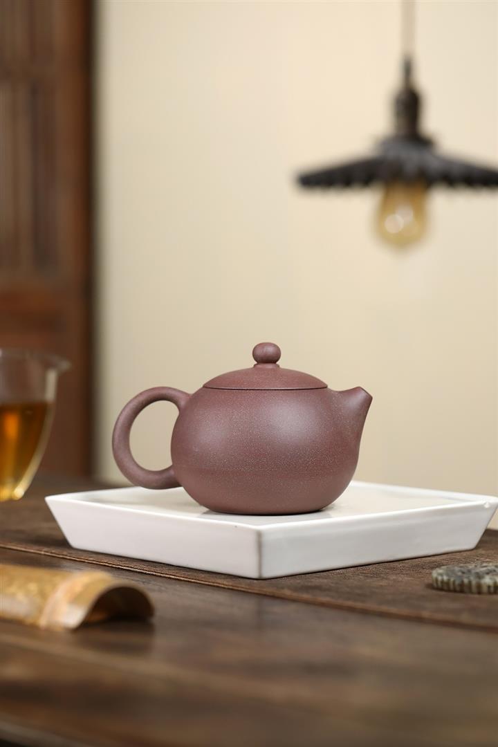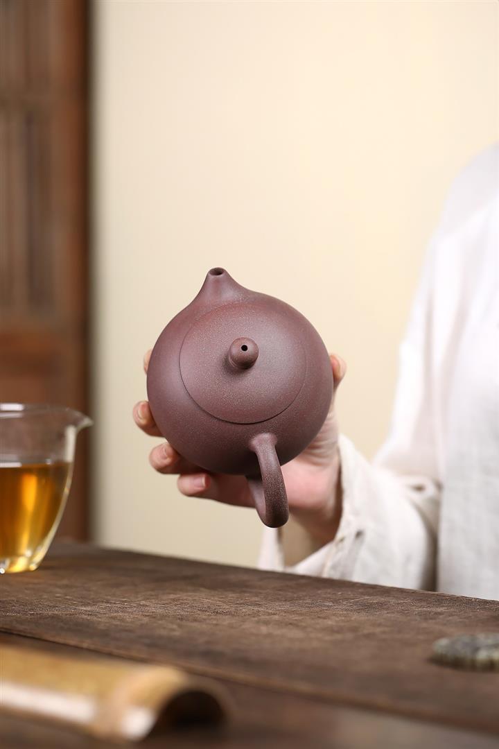 【作品介紹】此款壺形線條流暢,壺把,壺嘴,壺身壹氣呵成栩栩如生,是收藏把玩的好壺,泥料色澤古樸典雅,日久使用,漸露鋒芒,養成變化快,溫潤莊重,用其泡茶,使用的年代久,壺身就溫潤,泡出來的茶湯也就醇郁芳馨。