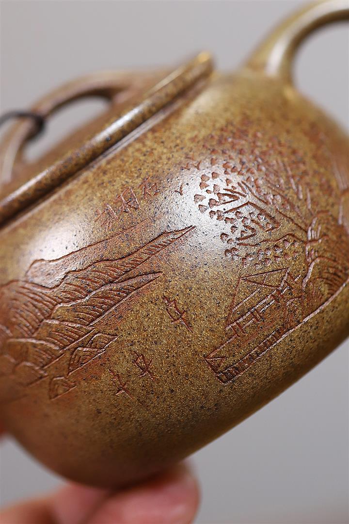 原礦紫泥描金遊龍秦權茶壺POT6831