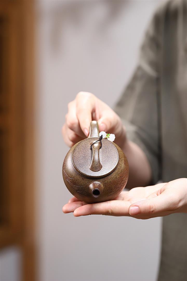 【作品介紹】此款壺形線條流暢,壺把,壺嘴,壺身壹氣呵成栩栩如生,是收藏把玩的好壺,泥料色澤古樸典雅,日久使用,漸露鋒芒,養成變化快,溫潤莊重,用其泡茶,使用的年代久,壺身就溫潤,泡出來的茶湯也就醇郁芳馨。