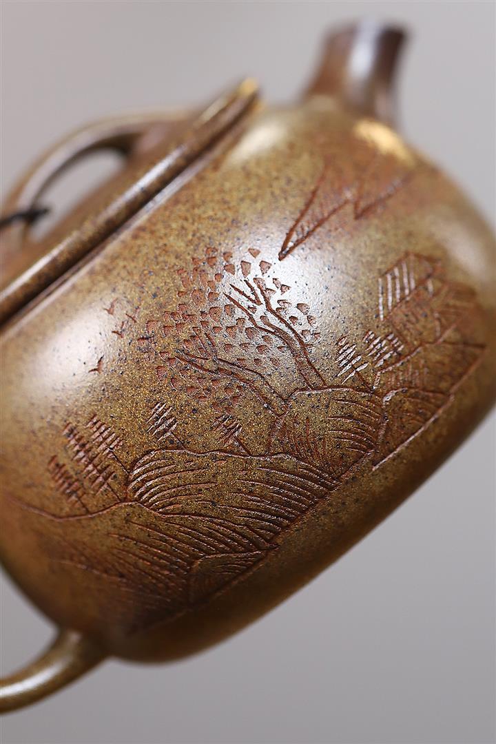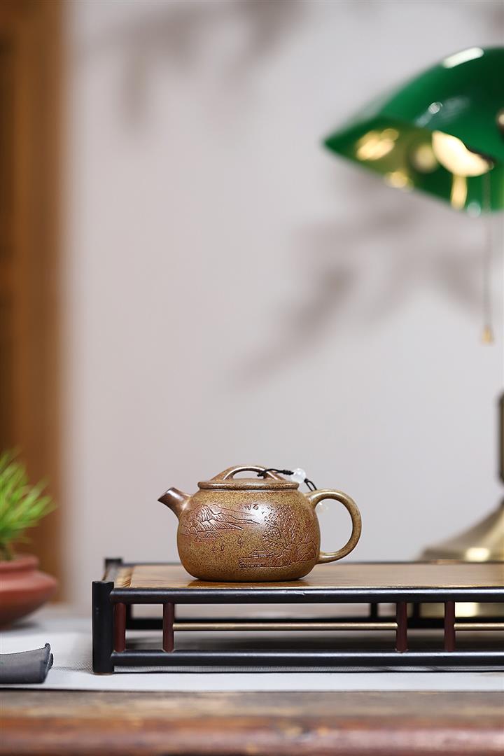 原礦紫泥金魚蓮子荷葉側把壺POT6837