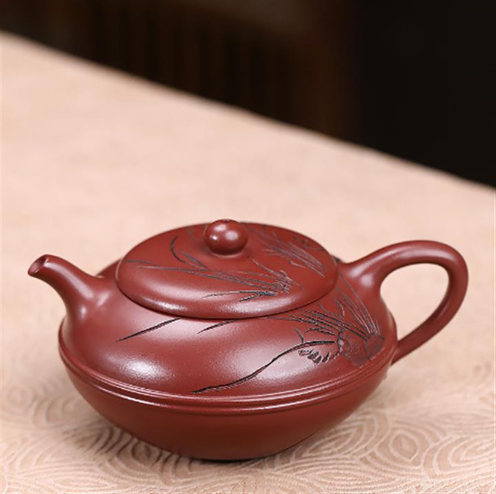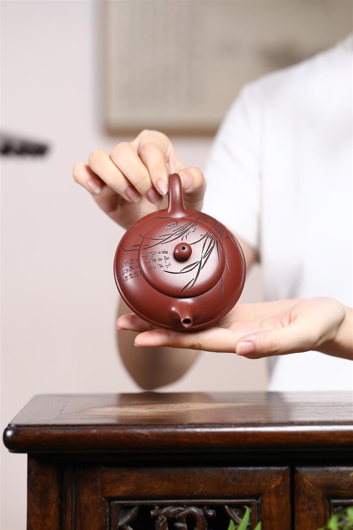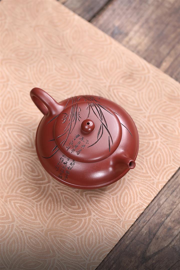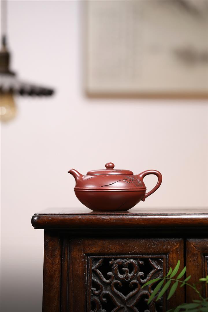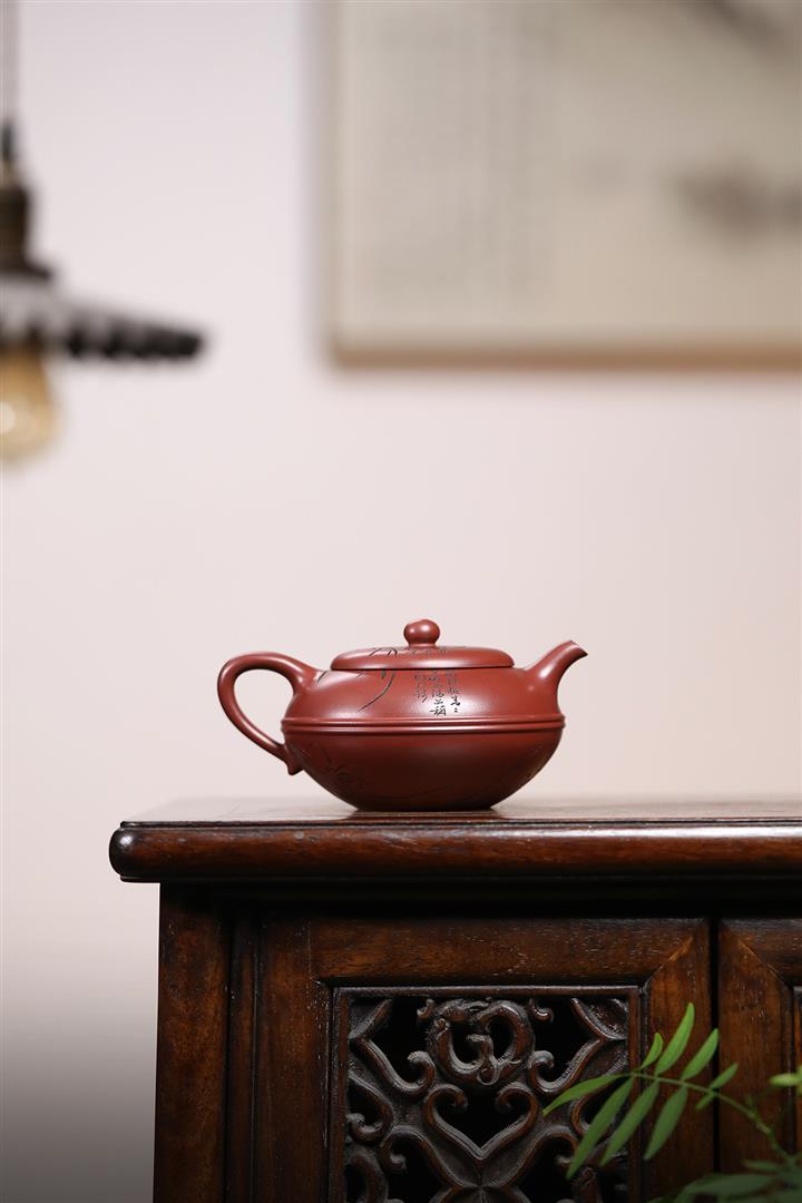 280cc原礦石紅泥滿刻松趣丹霞漢瓦茶壺POT8403