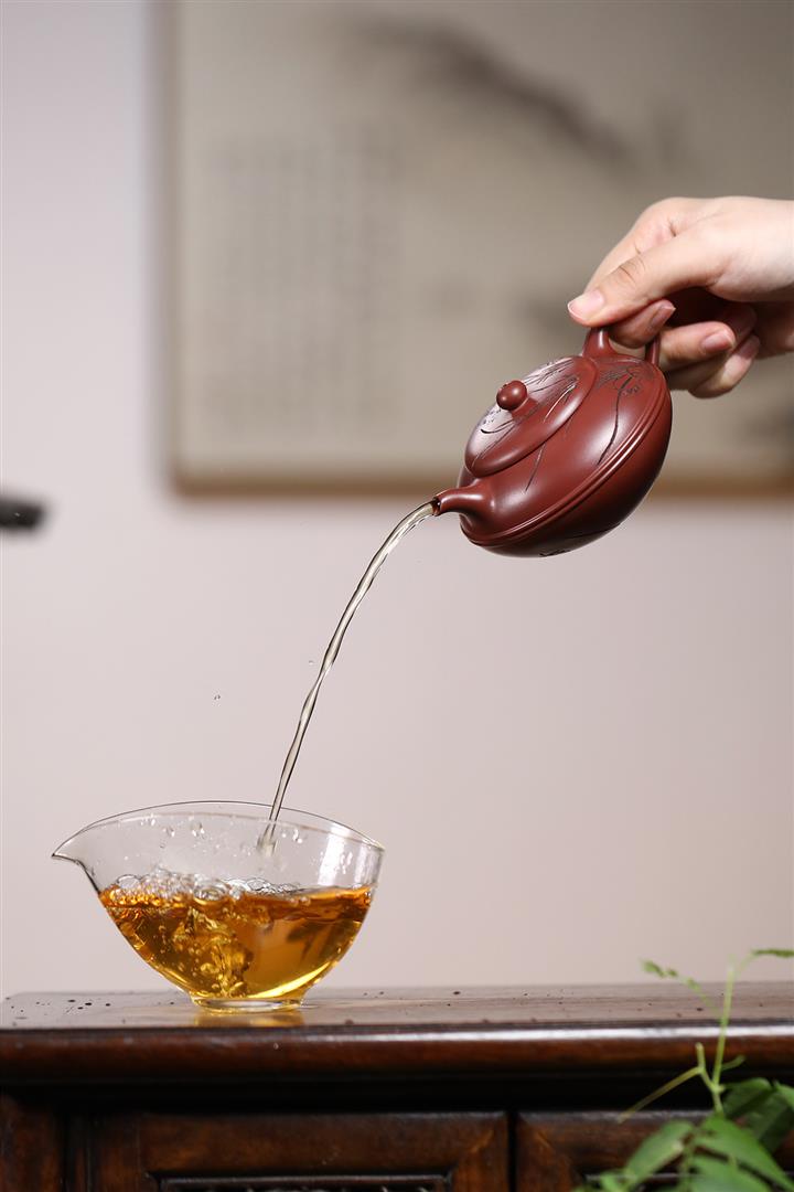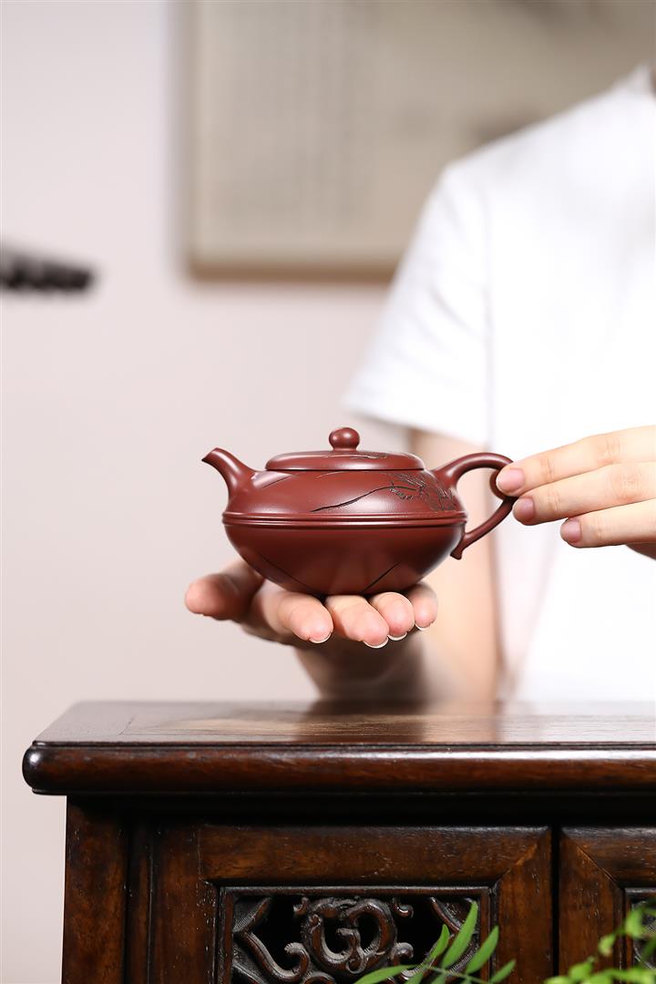 320cc原礦石紅泥滿刻桃源西施茶壺POT8404