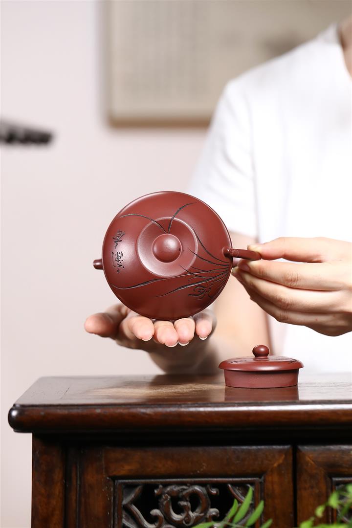 460cc原礦石紅泥滿刻鐘鳴山河茶壺POT8402