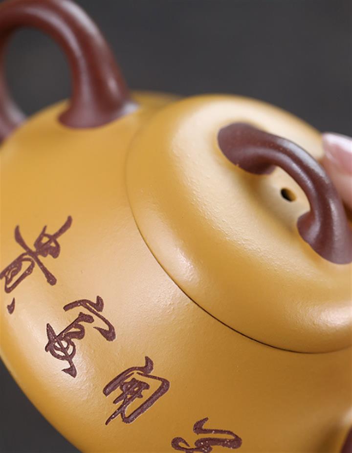 【作品介紹】此款壺形線條流暢,壺把,壺嘴,壺身壹氣呵成栩栩如生,是收藏把玩的好壺,泥料色澤古樸典雅,日久使用,漸露鋒芒,養成變化快,溫潤莊重,用其泡茶,使用的年代久,壺身就溫潤,泡出來的茶湯也就醇郁芳馨。
