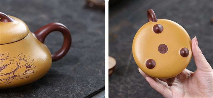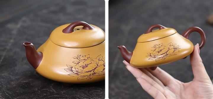 【泥料特點】砂土氣重,似淳實農民,日久使用,漸露鋒芒,養成變化,溫潤莊重。紫砂是壹種雙重氣孔結構的多孔性材質,氣孔微細,密度高。用紫砂壺沏茶,不失原味,且香不渙散,得茶之真香真味。紫砂使用越久,壺身色澤越發光亮照人,氣韻溫雅。紫砂壺長久使用器身會因撫摸擦拭,變得越發溫潤光澤。