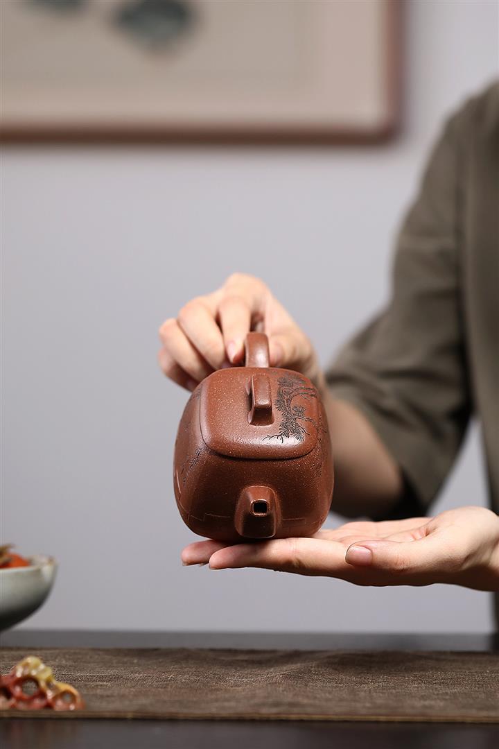 200cc原礦降坡泥方器刻繪茶壺POT8598