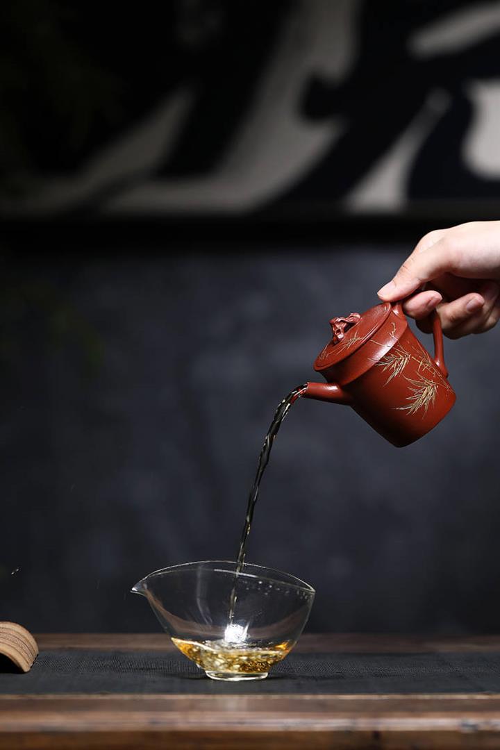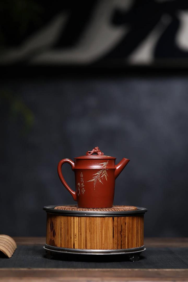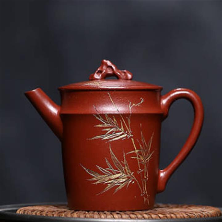 原礦赤金朱泥太湖石手工竹影漢瓦茶壺POT6566