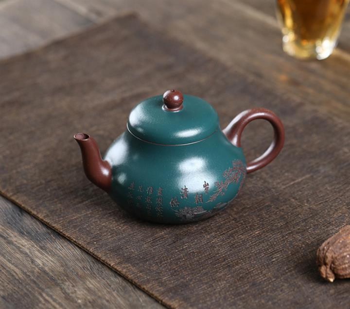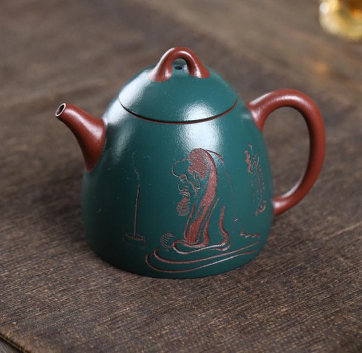 170cc原礦紫泥綠泥粉漿復古秦權茶壺POT8602